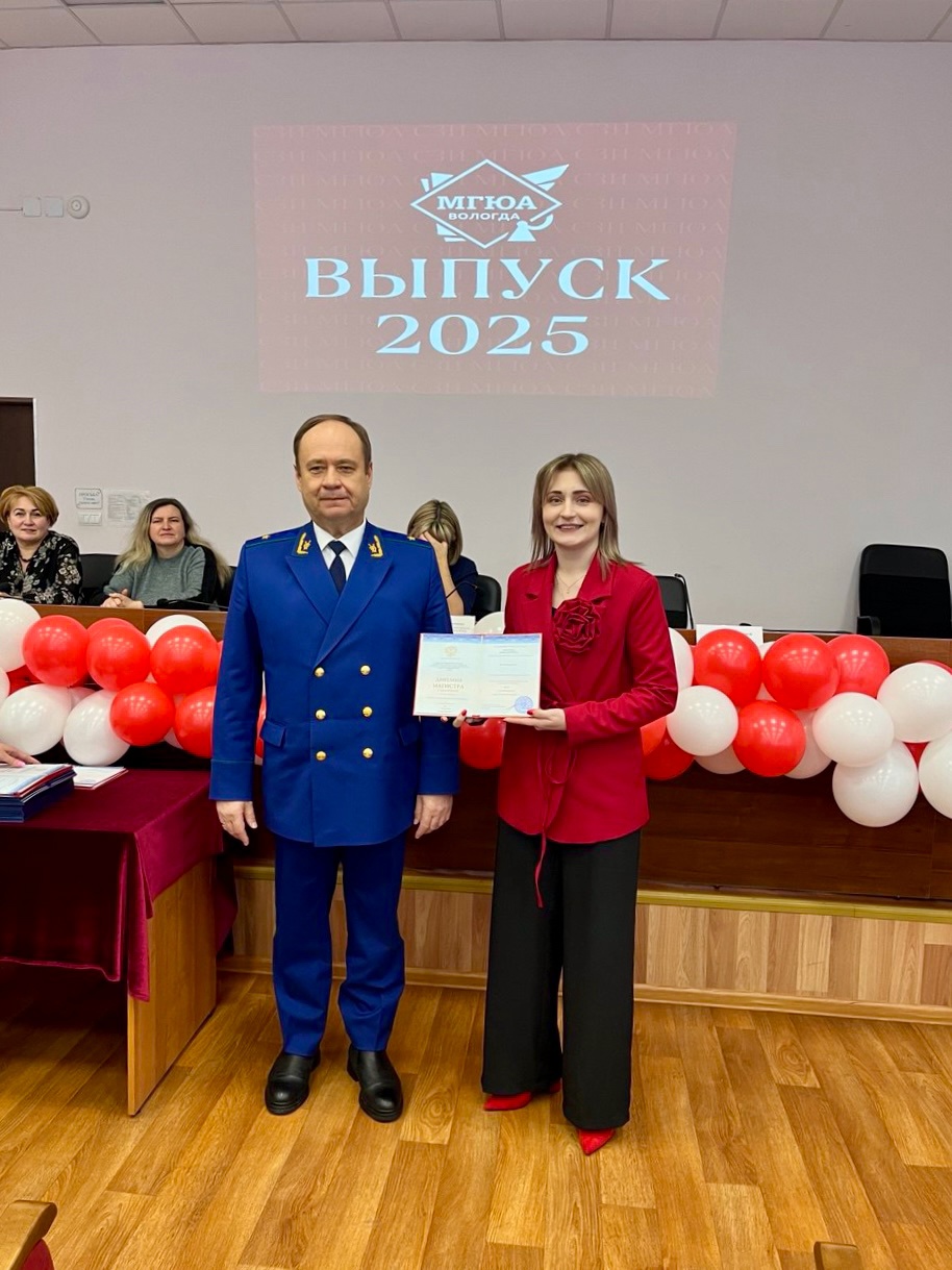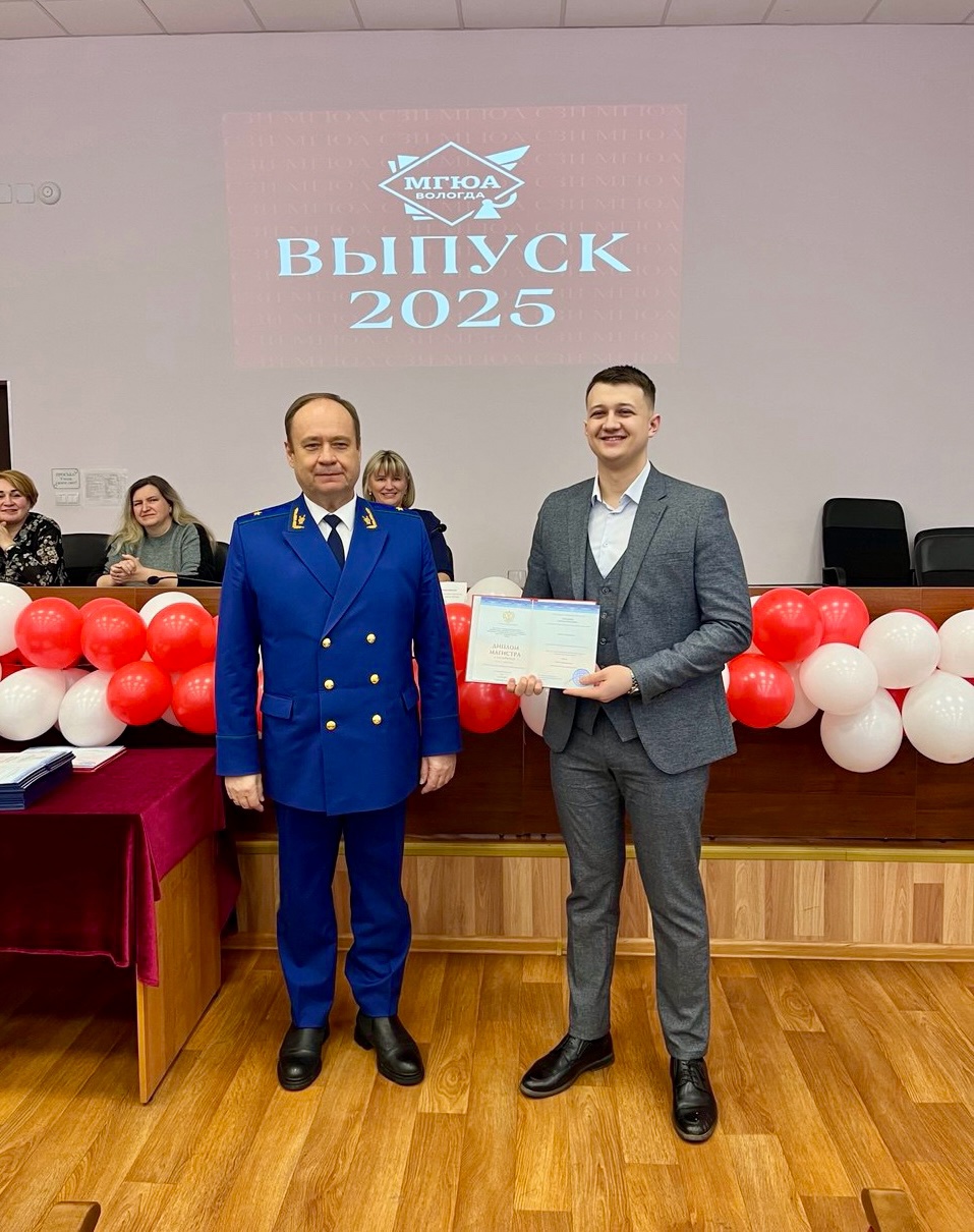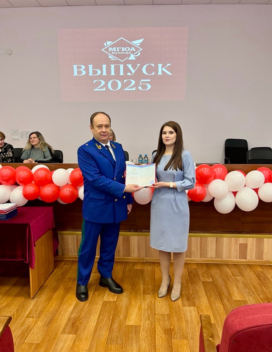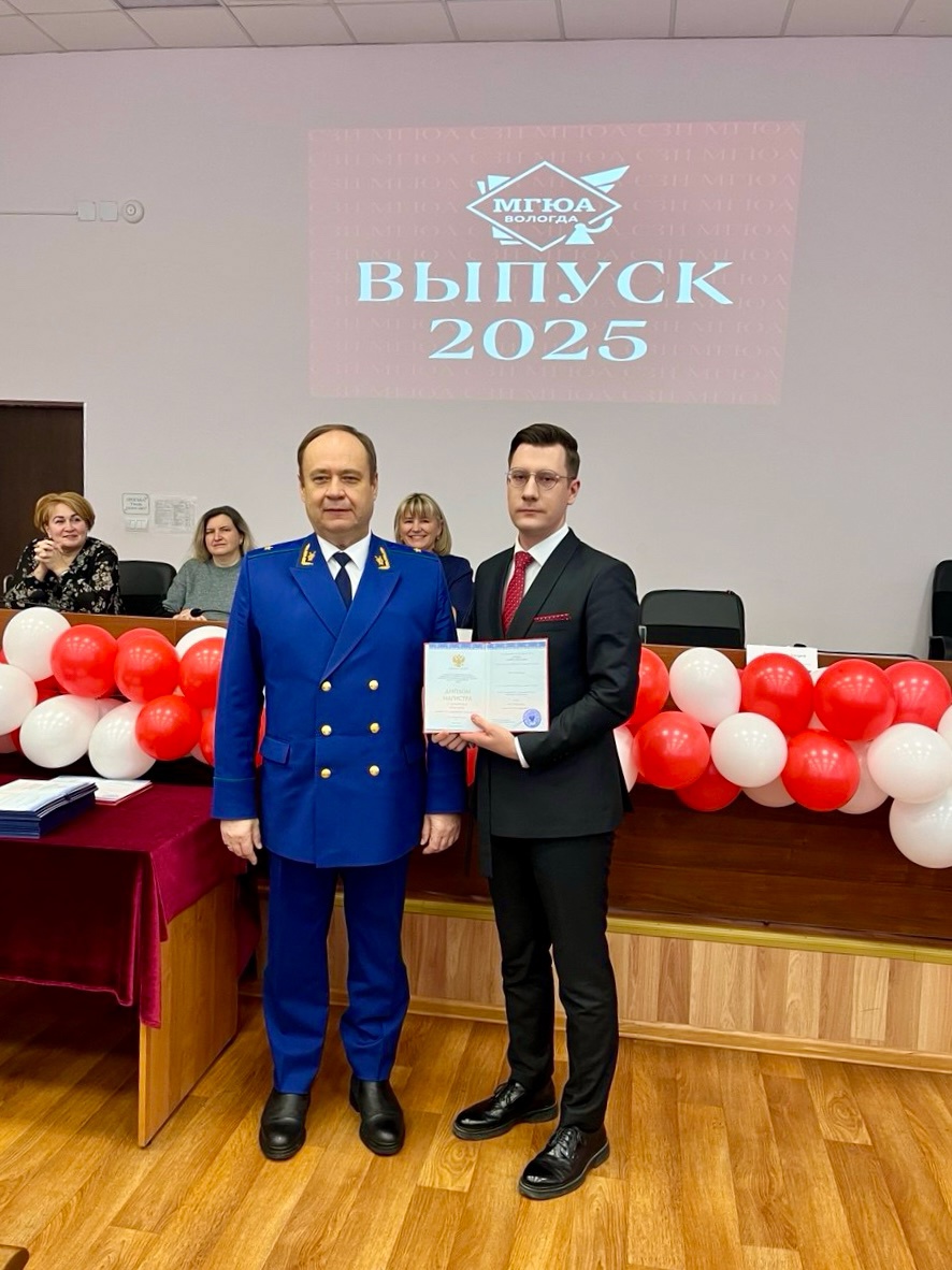 Прокурор Вологодской области Андрей Тимошичев вручил дипломы с отличием 25 выпускникам института.