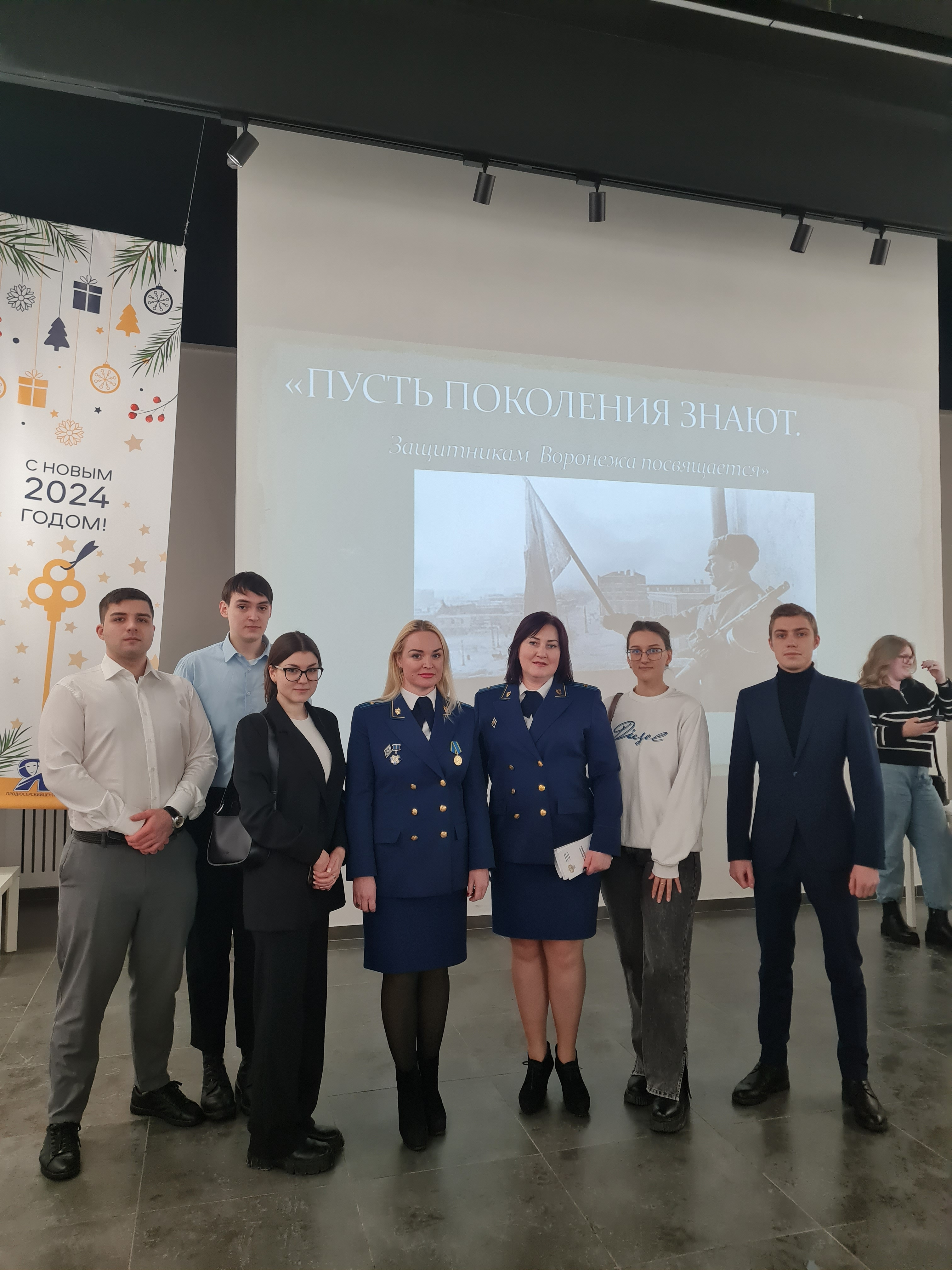 Прокуратурой Центрального района г. Воронежа в рамках работы по патриотическому воспитанию молодежи организовано посещение художественной выставки «Пусть поколения знают: защитникам Воронежа посвящается» для студентов юридического факультета Воронежского государственного университета.