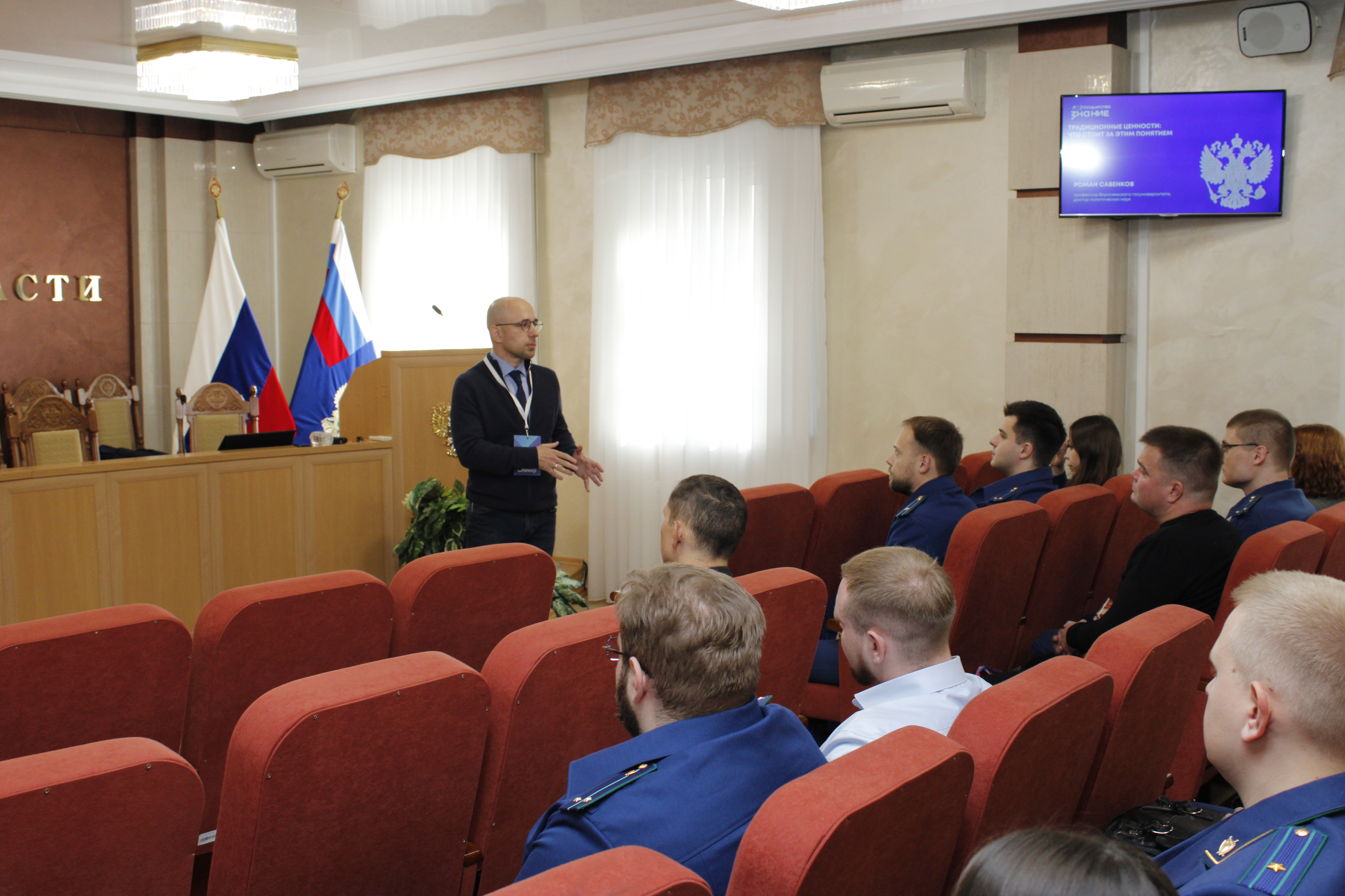 Сегодня, 03 октября 2025 года, в прокуратуре области в рамках работы по государственно-патриотическому воспитанию прошла лекция для молодых прокурорских работников и руководителей прокуратур районного звена на тему: «Ценностные основания принятия государственных решений в Российской Федерации».