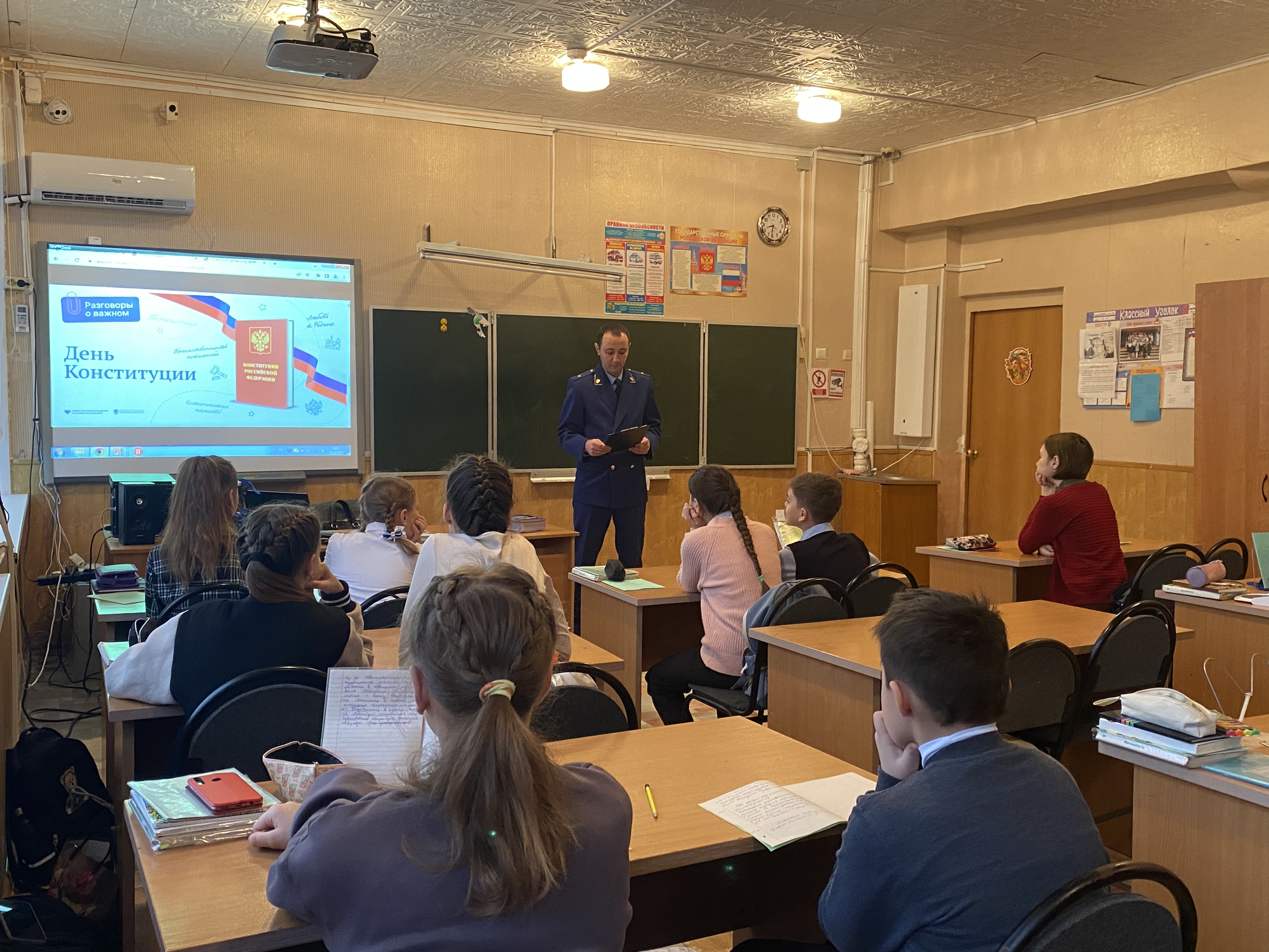 Представитель прокуратуры района рассказал школьникам об истории принятия Конституции, ее значении для государства, основных принципах, закрепленных в Основном Законе страны.