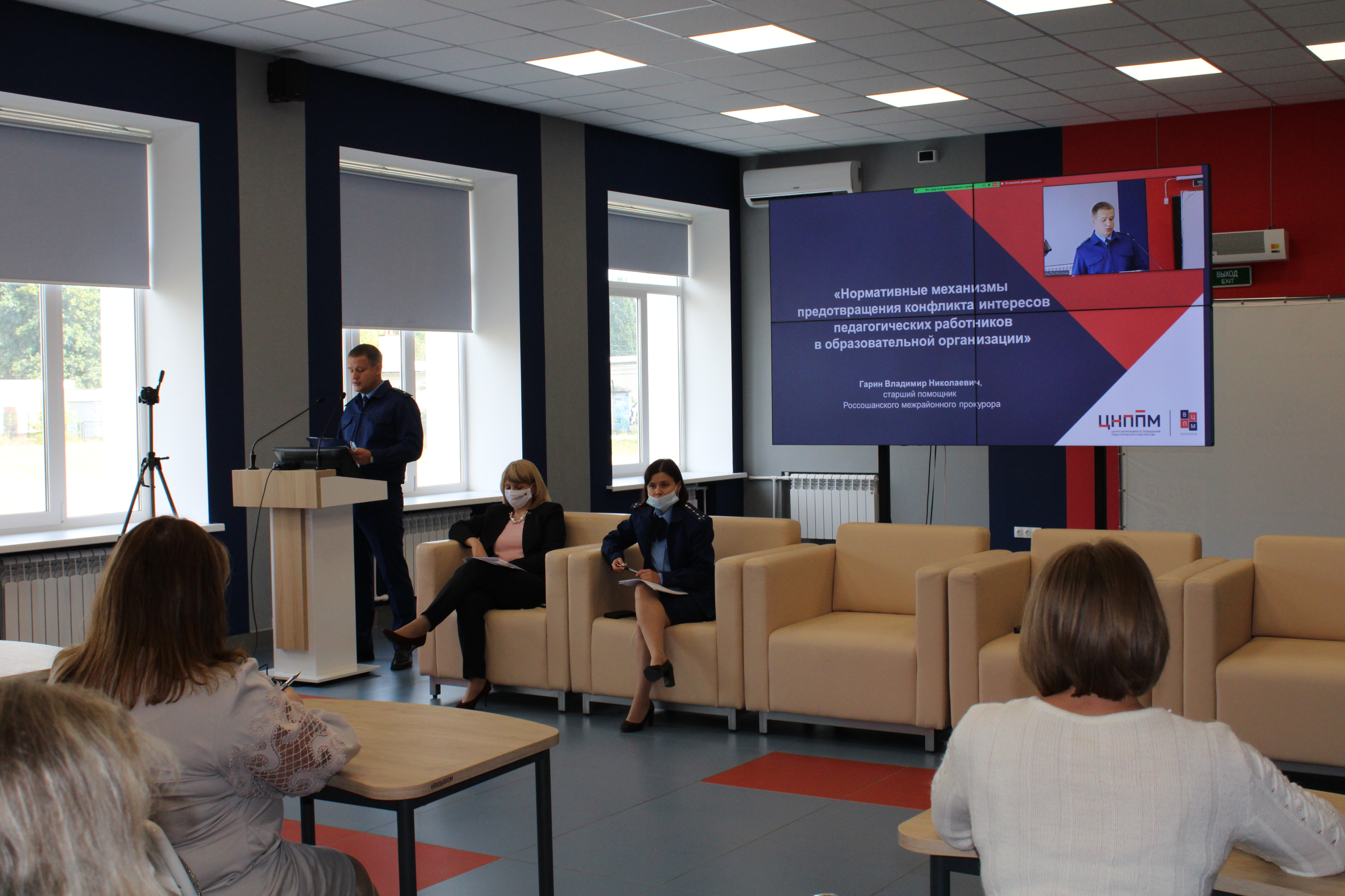 Россошанской межрайонной прокуратурой совместно с Воронежским центром непрерывного повышения педагогического мастерства в режиме видеоконференцсвязи проведен семинар с руководителями общеобразовательных учреждений 27 районов области.