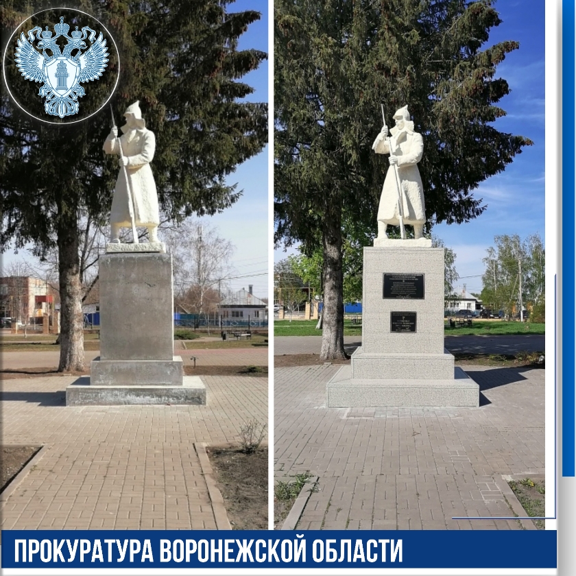 В Грибановском районе после вмешательства прокуратуры отреставрированы памятники защитникам Отечества