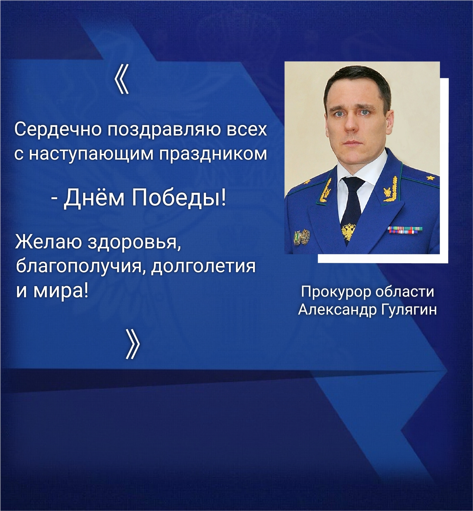Поздравление прокурора области Александра Гулягина с наступающим праздником - Днём Победы!