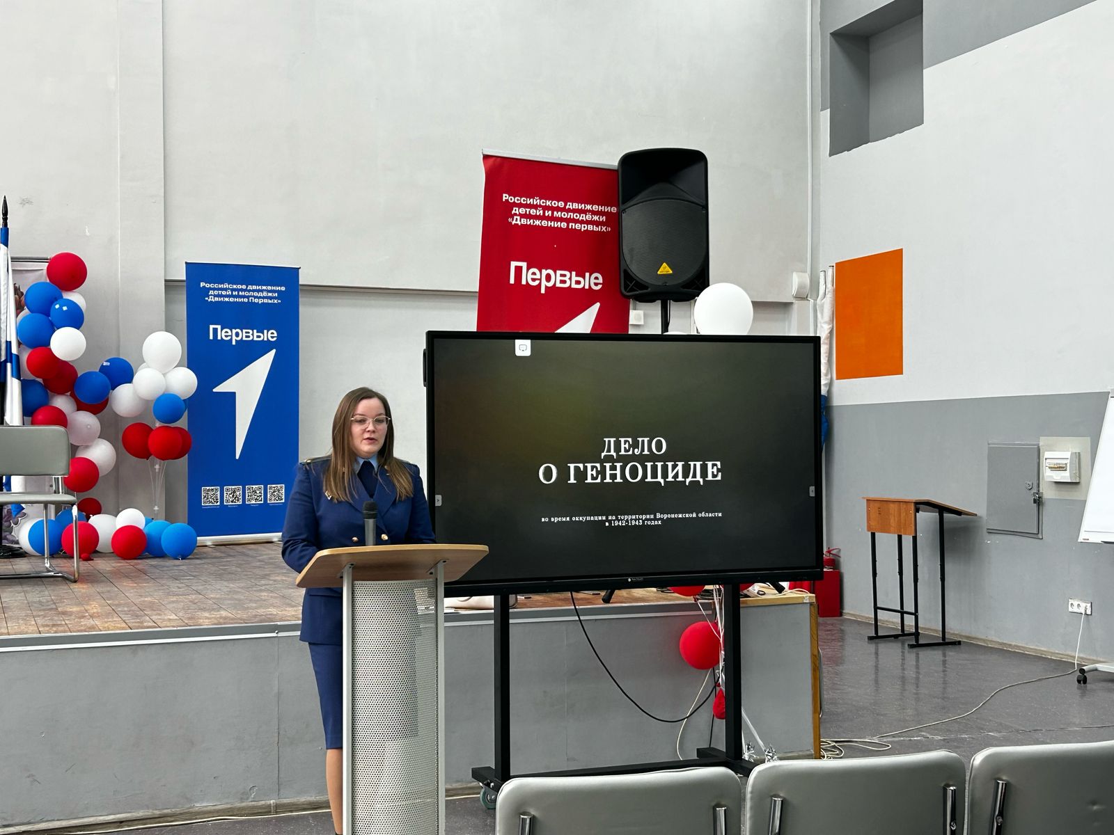 В преддверии празднования 80-й годовщины Победы в Великой Отечественной войне представитель прокуратуры области выступила перед учащимися старших классов Новоусманской средней школы № 3 и Отрадненской гимназии на тему: «Признание геноцидом преступлений фашистов на территории Воронежской области».