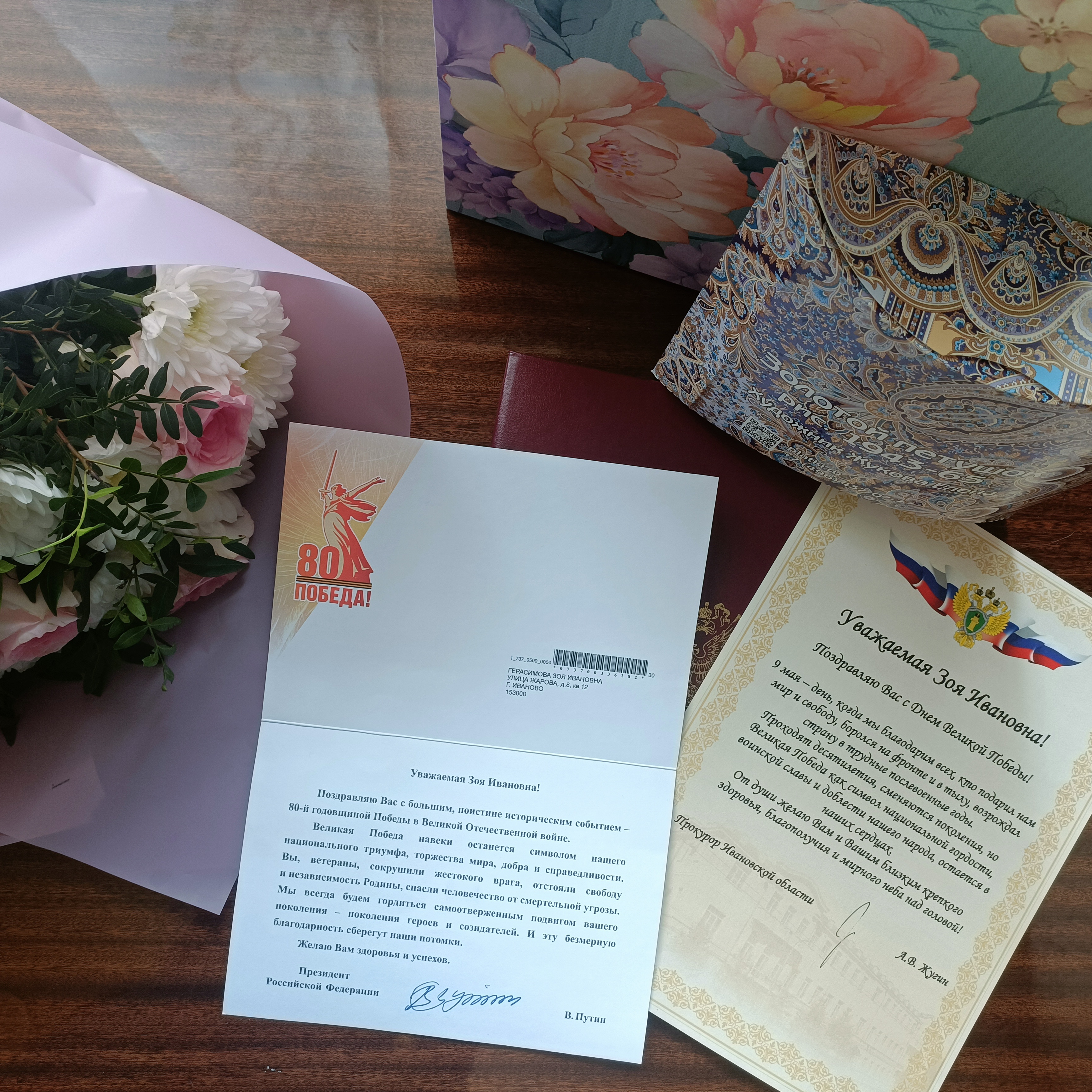 В преддверии празднования 80-й годовщины Великой Победы первый заместитель прокурора Ивановской области Бадмаева Ирина Александровна посетила ветерана прокуратуры – труженика тыла Великой Отечественной войны Герасимову Зою Ивановну.