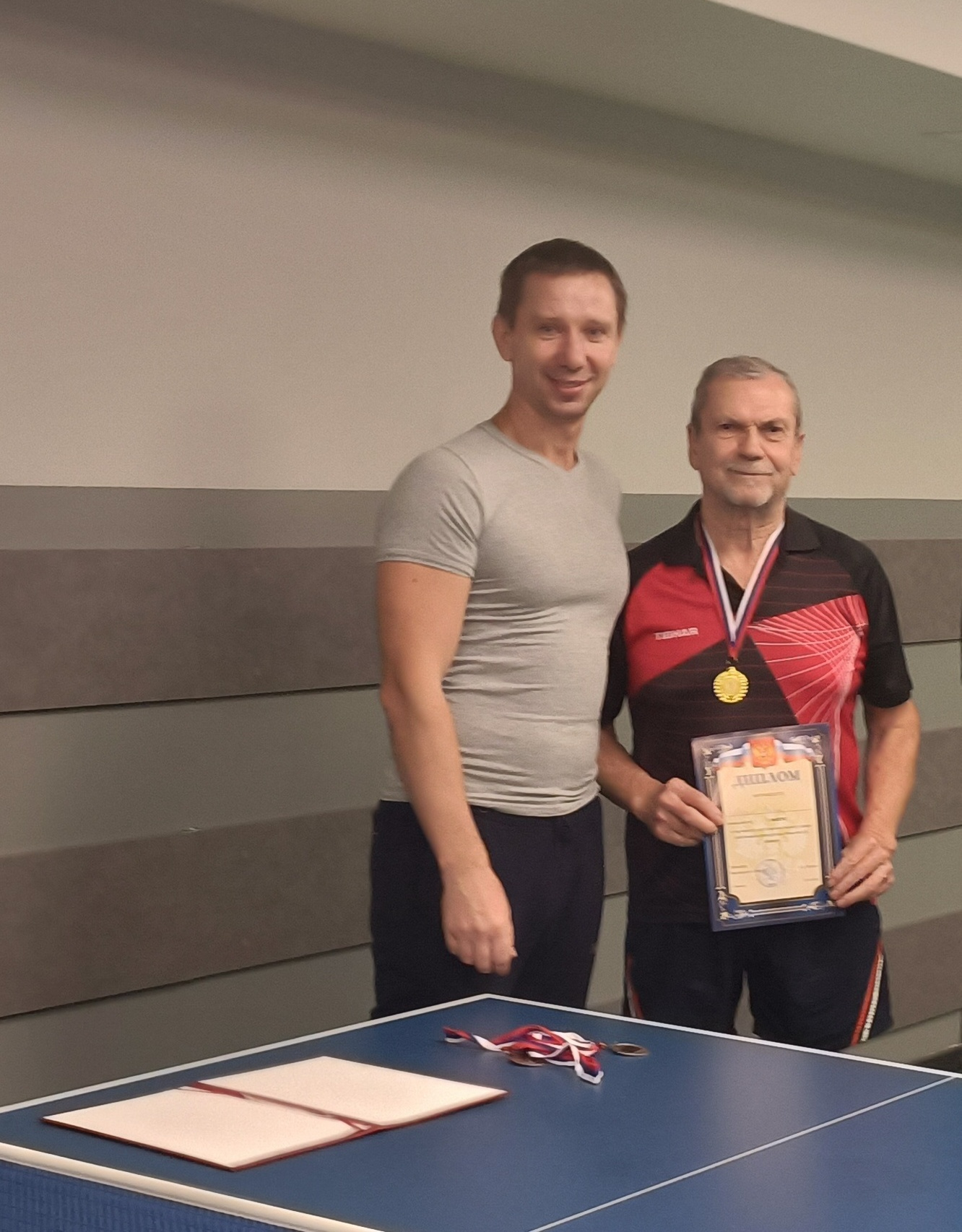Золотая и серебряная медали достались пенсионерам прокуратуры области мастерам спорта по настольному теннису Морозову Виктору Аркадьевичу и Тымочко Михаилу Владимировичу соответственно.