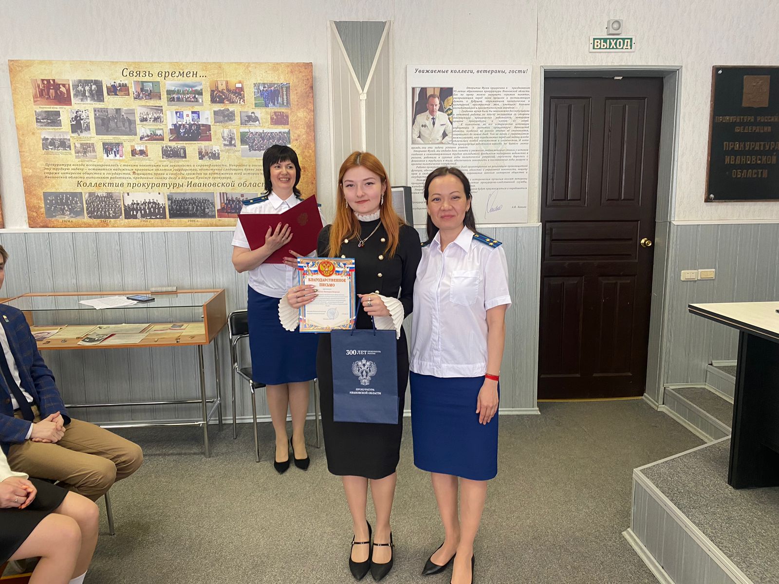 В музее прокуратуры Ивановской области 23 мая состоялась церемония награждения литературно-просветительского конкурса, посвящённого работникам прокуратуры Ивановской области - участникам Великой Отечественной войны 1941-1945 годов и труженикам тыла, в котором принимали участие молодые специалисты прокуратуры и студенты образовательных организаций высшего юридического образования.