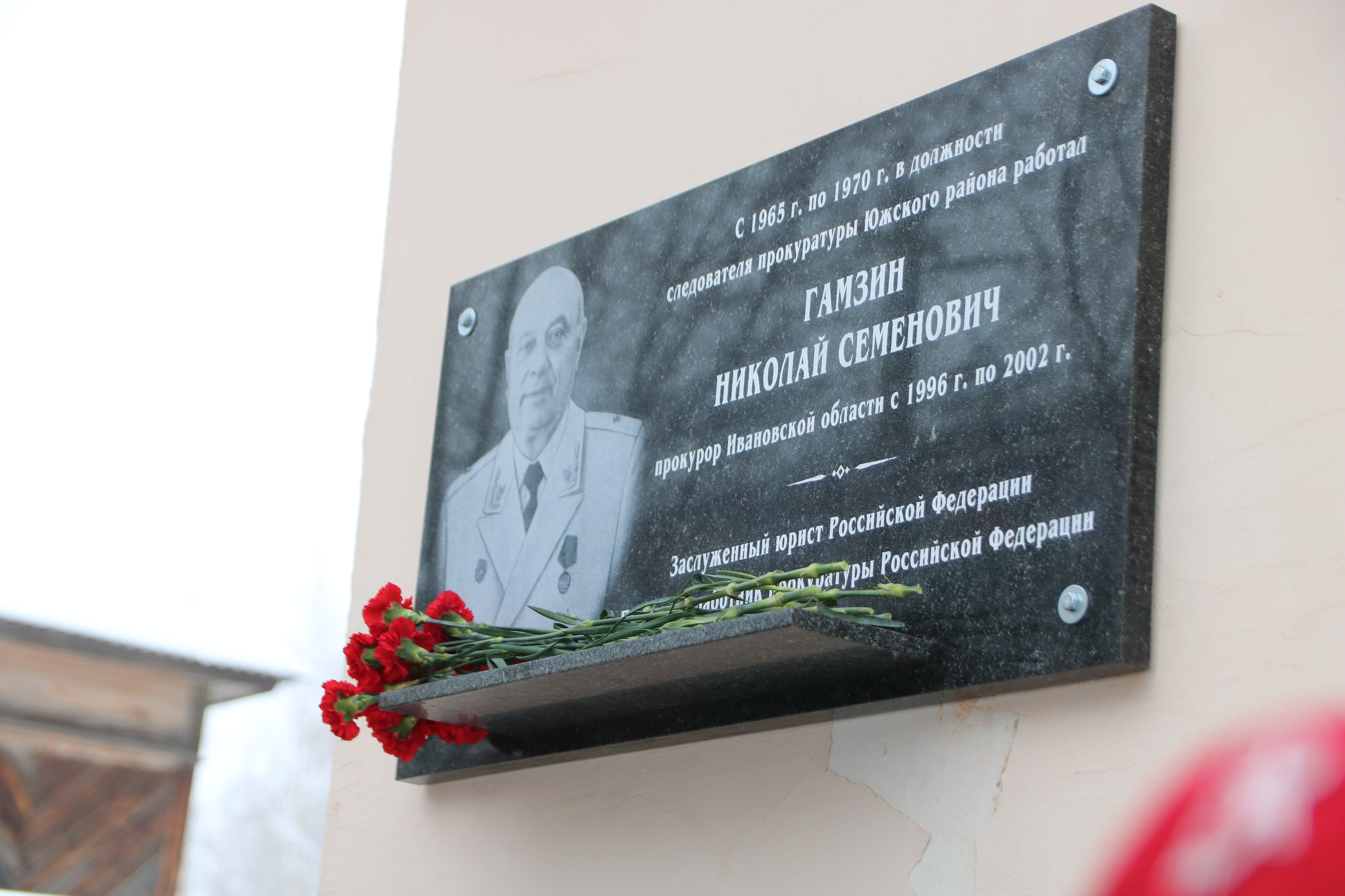 Ветераны приняли участие в открытии на здании прокуратуры Южского района мемориальной доски памяти Почетному работнику прокуратуры Российской Федерации Николая Семеновича Гамзина