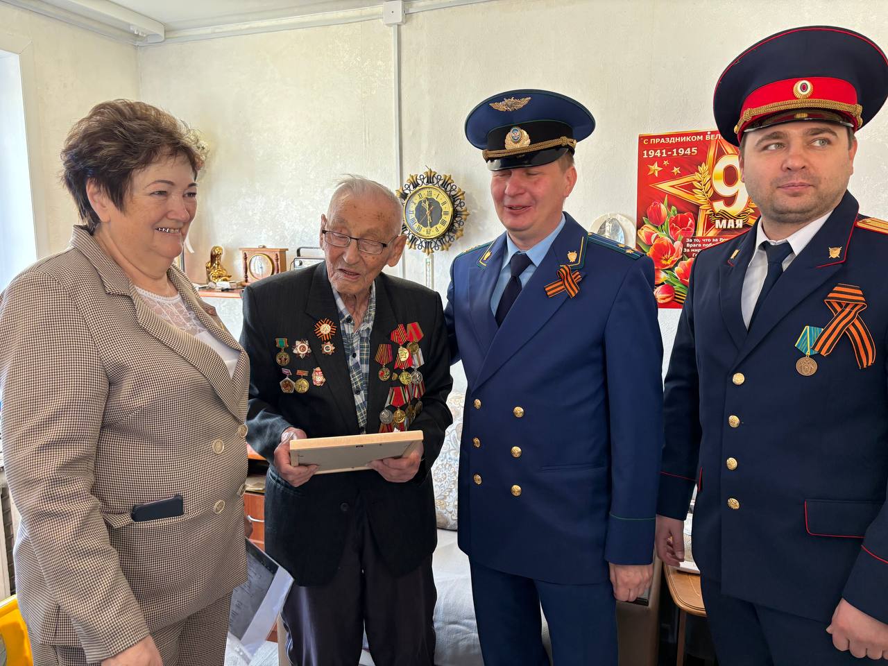 Прокурор Слюдянского района совместно с представителями СК, комитета Солдатских матерей Байкальска, Центром помощи детям, оставшимся без попечения родителей Слюдянского района, поздравил с Днем Победы ветеранов Великой Отечественной войны 1941-1945 гг., непосредственных участников боевых сражений на Западном и Восточном фронтах — Карамышева Якова Семёновича, Попова Михаила Дмитриевича, Конькову Веру Егоровну. Они внесли свой вклад в Победу, являются примером подвига, стойкости, гордостью Слюдянского района.