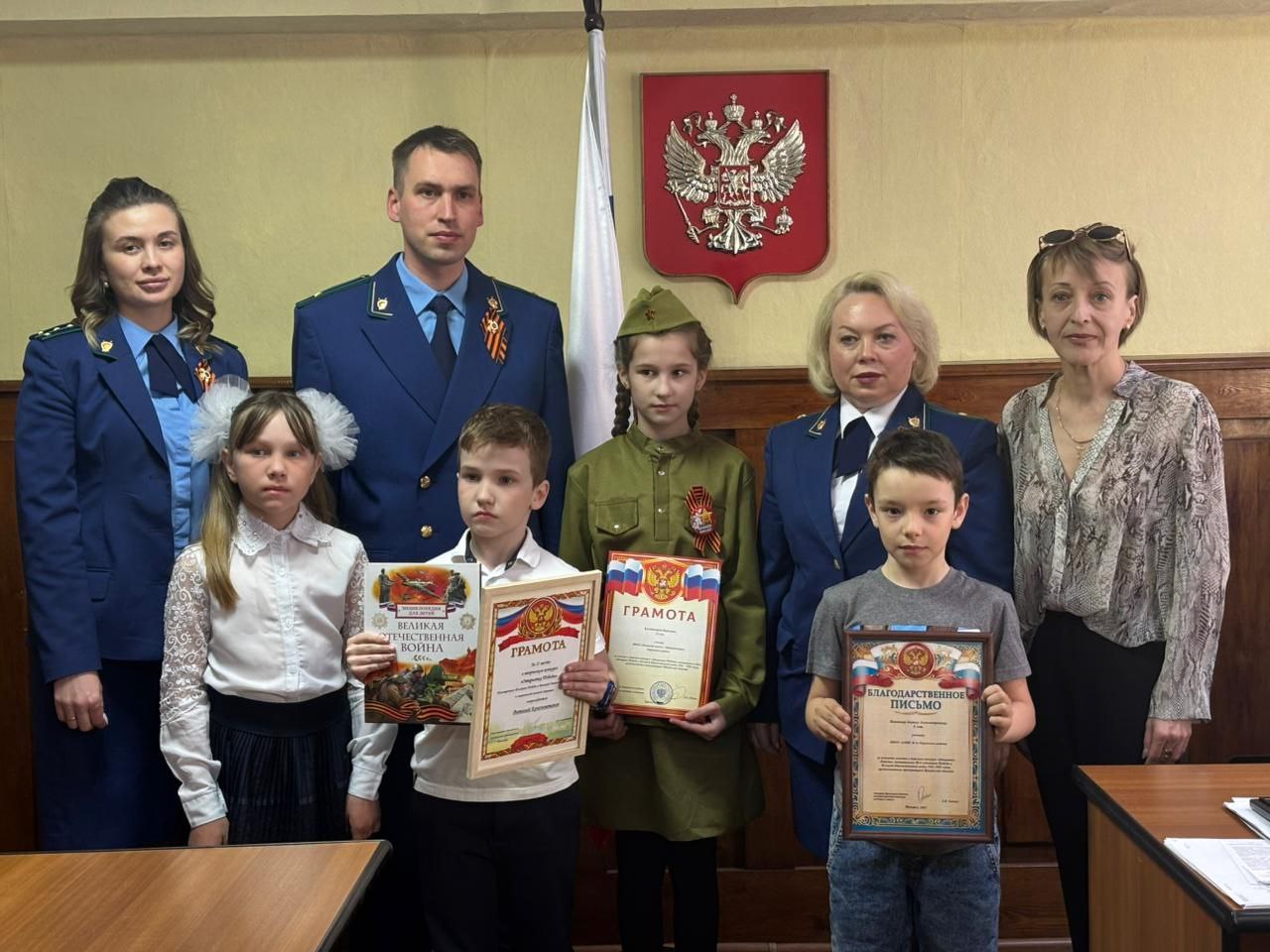 Прокурор Киренского района в преддверии Дня Великой Победы встретился с участниками конкурса «Открытка Победы», в котором приняли участие семь учащихся образовательных организаций Киренского района. В ходе встречи состоялось торжественное вручение благодарственных писем прокурора области детям.