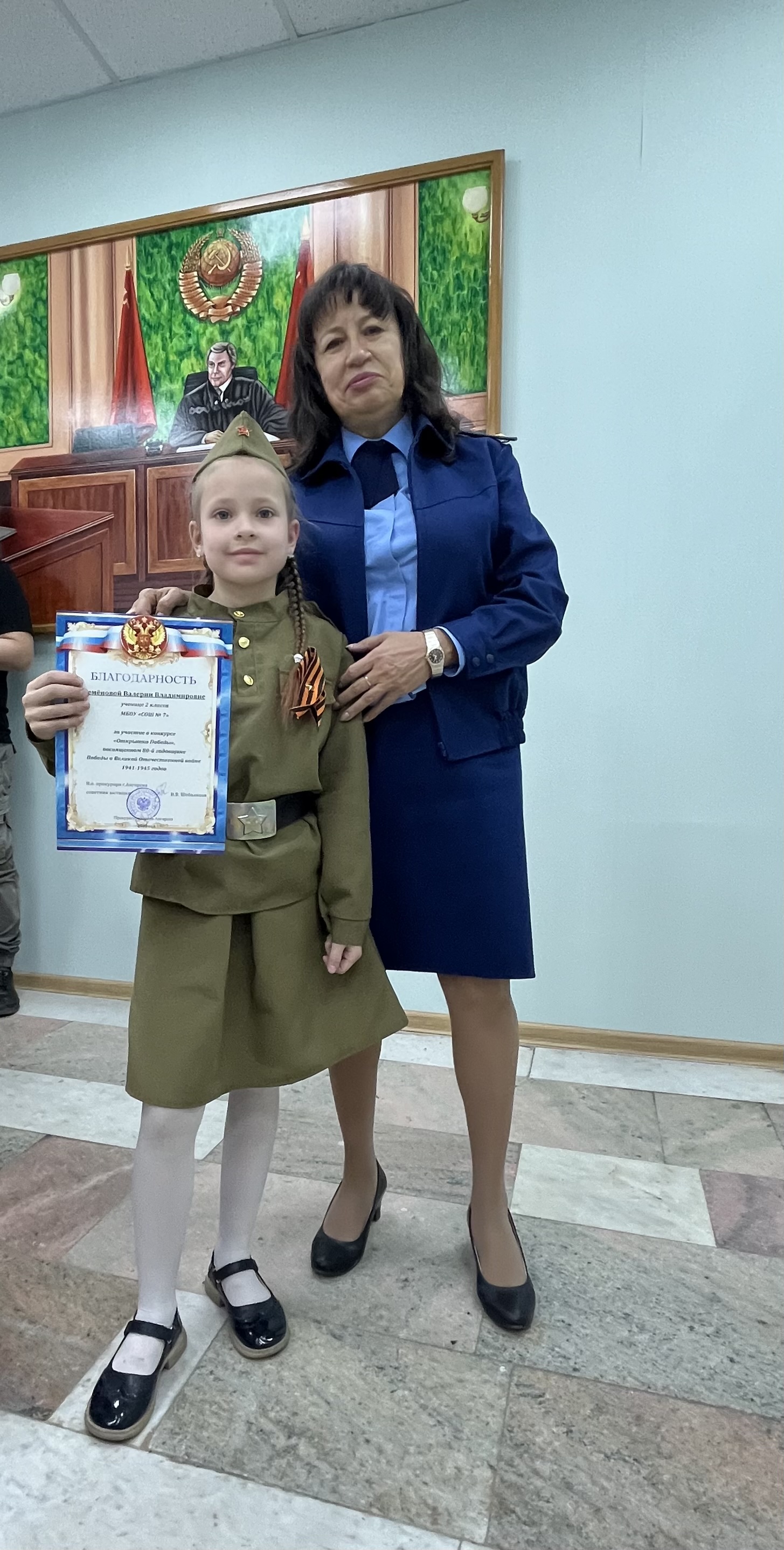 Исполняющая обязанности прокурора города Шебалкова И.В. поздравила участников с наступающим праздником, поблагодарила учеников Ангарского городского округа за активное участие в патриотическом конкурсе, а также их родителей за поддержку своих детей.