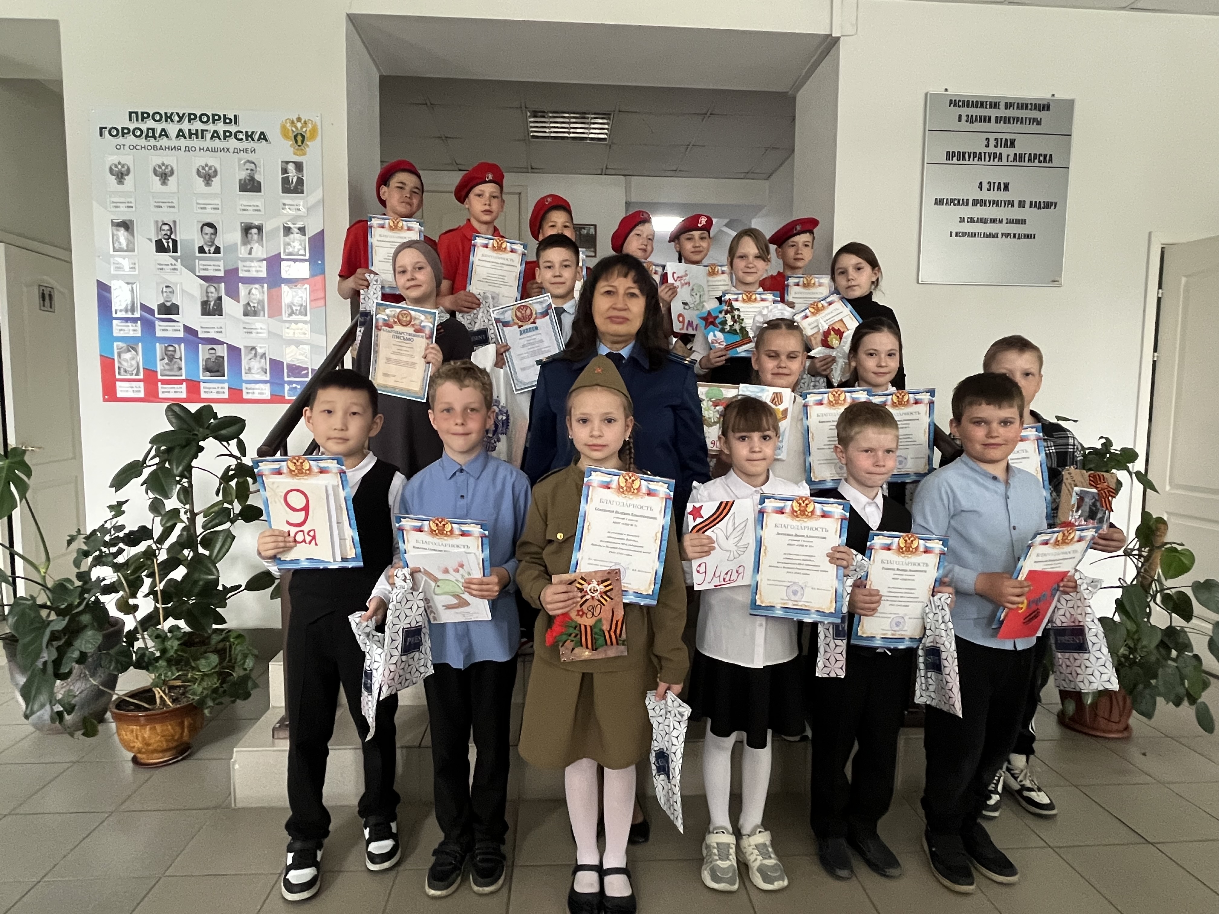 В прокуратуре г. Ангарска в торжественной обстановке вручены благодарности и поощрительные призы участникам детского конкурса «Открытка Победы», посвящённого 80-й годовщине Победы в Великой Отечественной войне 1941-1945 годов, организованного прокуратурой области.