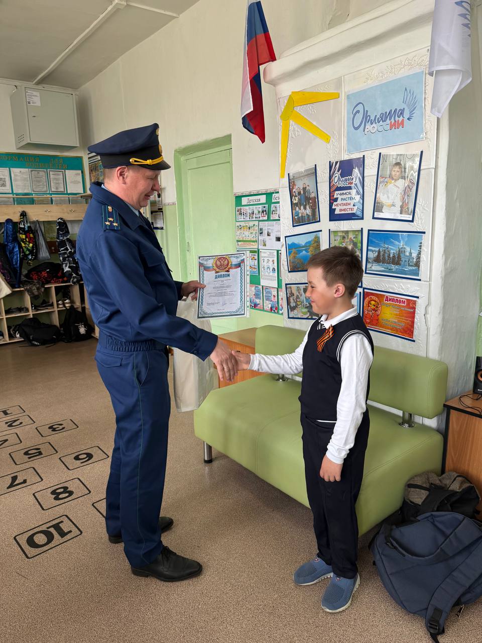 Прокурор Слюдянского района Баранов П. В. встретился с учеником МБОУ «Начальная школа-детский сад № 17» п. Солзан Слюдянского района Евдокимовым Сергеем и вручил ему подарки. Сергей участвовал и занял первое место в детском конкурсе «Открытка Победы», посвященном 80-й годовщине Победы в Великой Отечественной войне 1941-1945 гг., организованном прокуратурой Иркутской области.