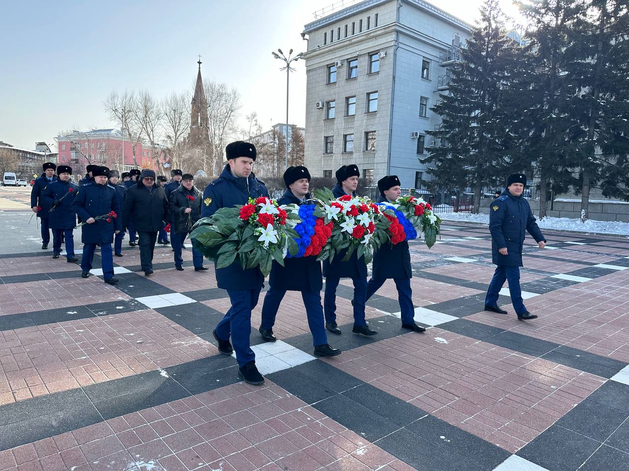 Накануне Дня защитника Отечества работники и пенсионеры органов прокуратуры Иркутской области почтили памятью тех, кто отдал свою жизнь, сражаясь за Родину, и посетили мемориал «Вечный огонь славы» на Нижней Набережной г. Иркутска.
