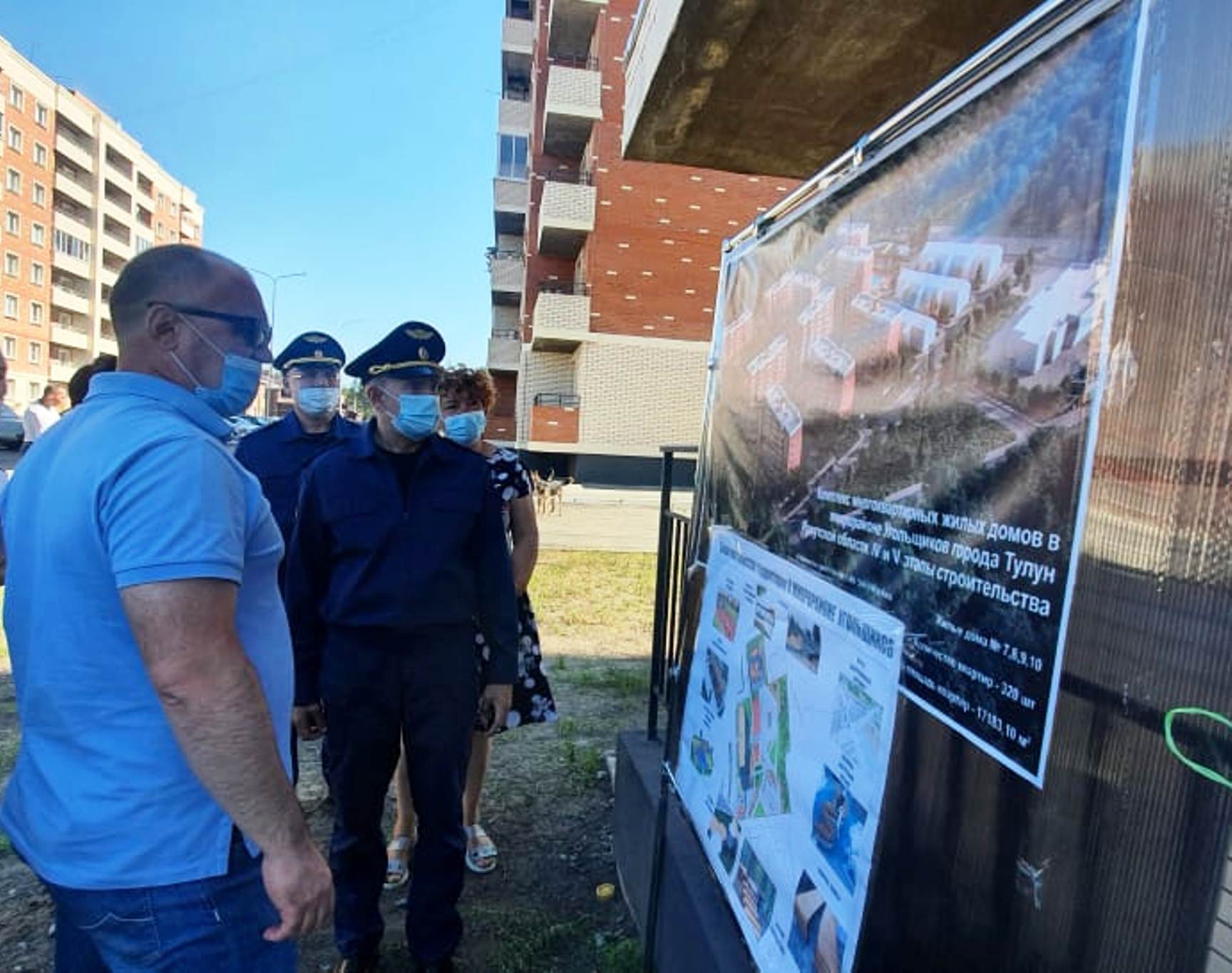 В г. Тулуне прокурор области посетил микрорайоны Угольщиков и Березовая Роща, осмотрел уже возведенные дома, детский сад, физкультурно-оздоровительный комплекс с ледовым покрытием, а также объекты незавершенного строительства многоквартирных домов для граждан пострадавших от грунтовых вод, индивидуальных жилых домов госжилфонда и др.