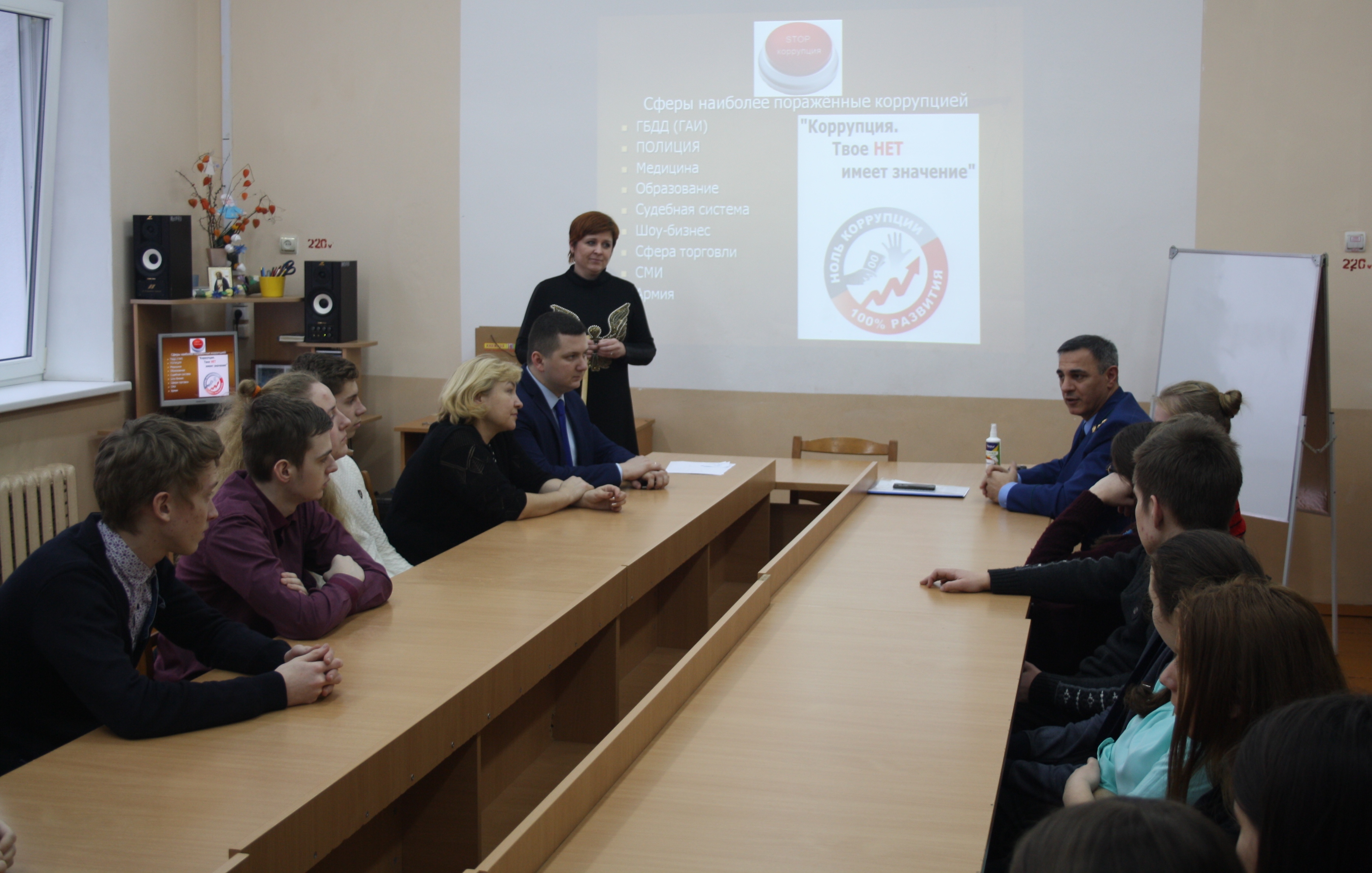В ходе встречи прокурор ознакомил школьников с результатами работы прокуратуры в сфере надзора за соблюдением законов о противодействии коррупции, о роли прокуратуры в обеспечении законности и правопорядка. Также было обращено внимание школьников на соблюдение законов и проявление активной гражданской позиции с целью противодействия коррупционным проявлениям, предавать гласности случаи коррупции.
