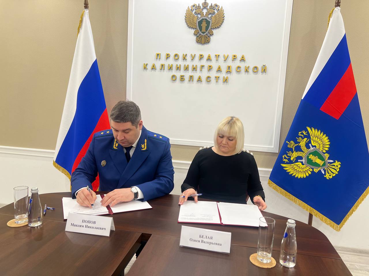 Прокурор Калининградской области Максим Попов и врио Уполномоченного по защите прав предпринимателей Олеся Белая подписали Соглашение о взаимодействии
