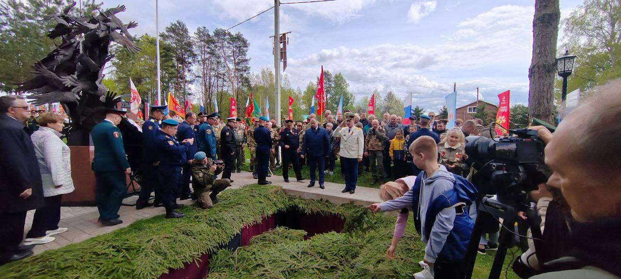 Присутствующие возложили цветы и почтили память погибших минутой молчания.