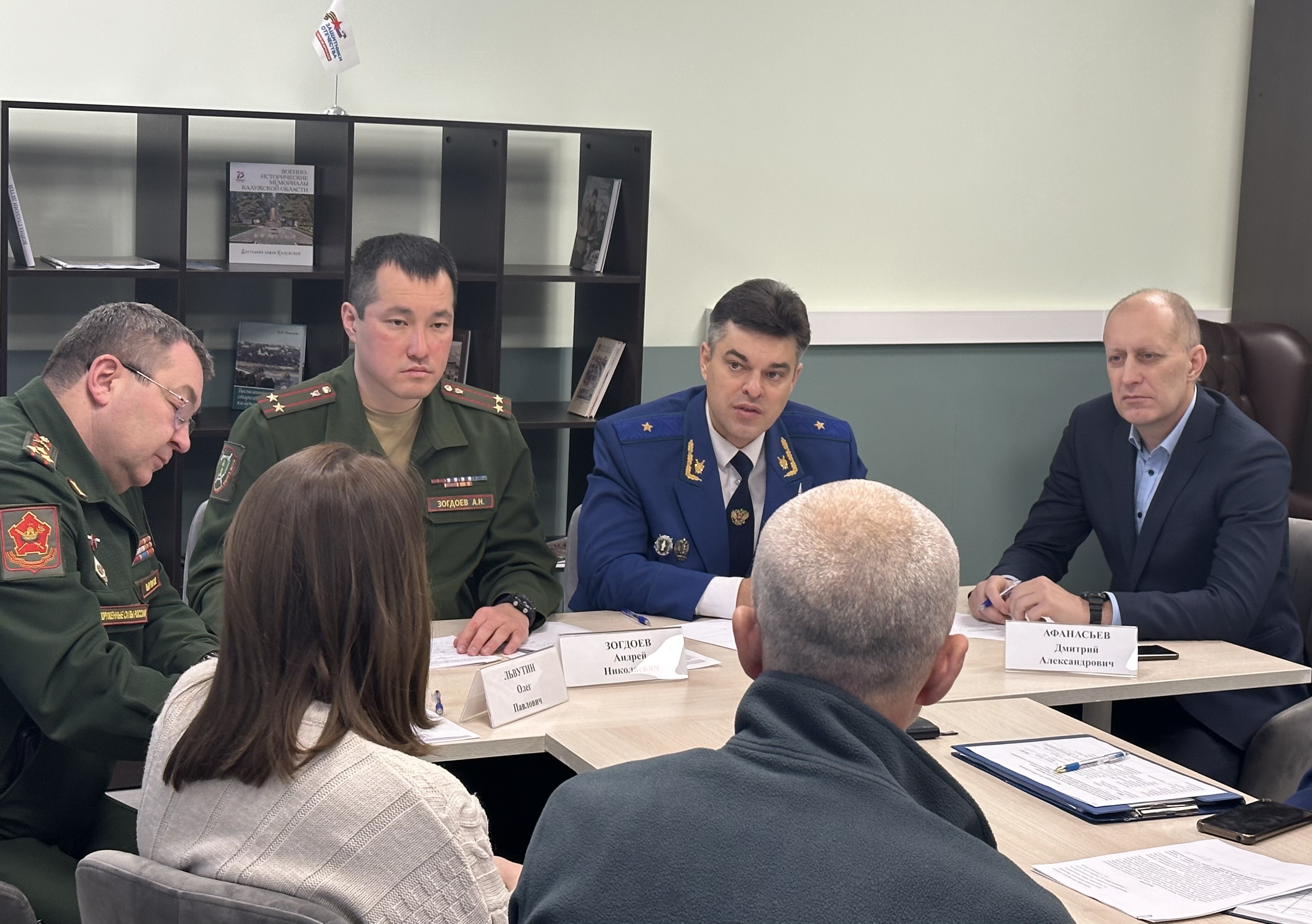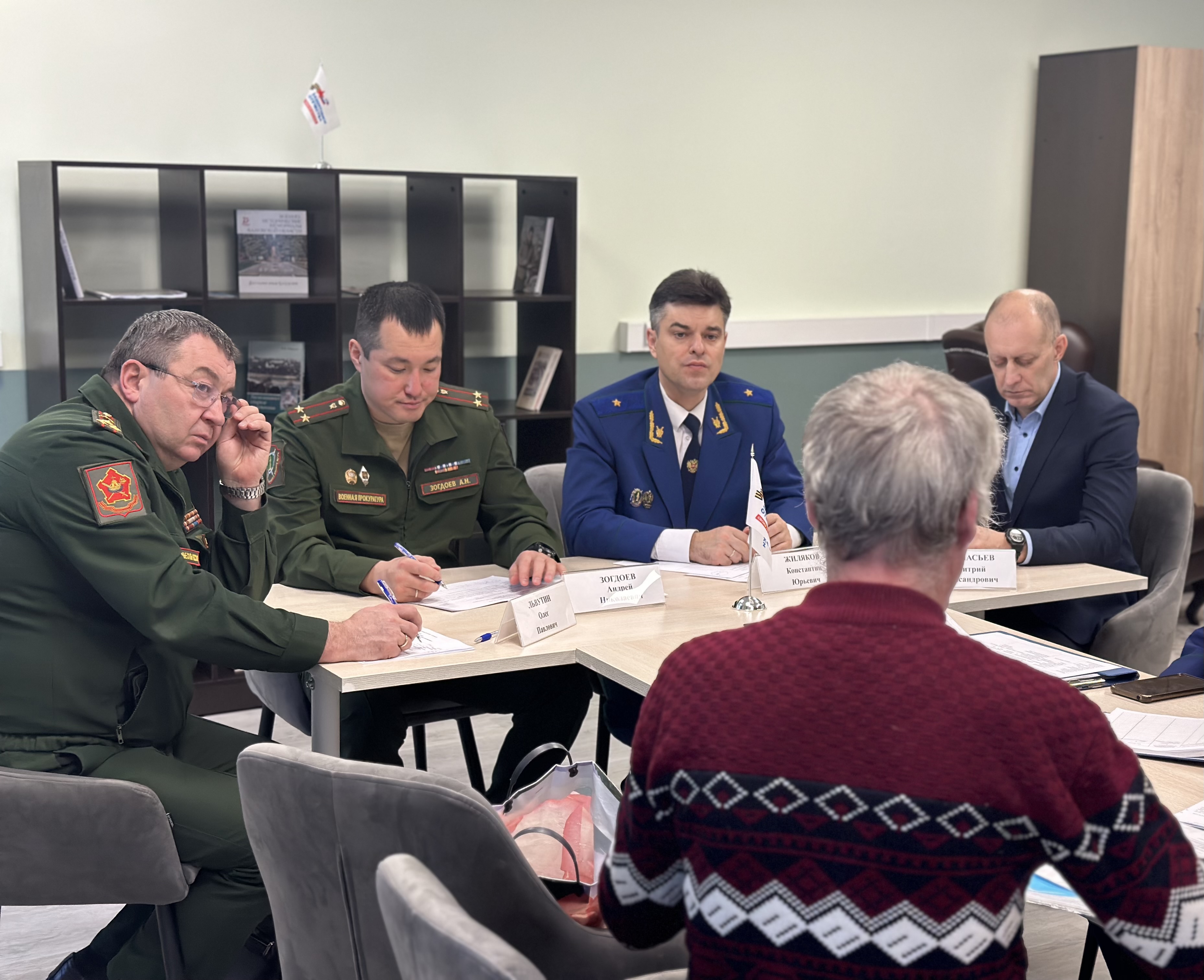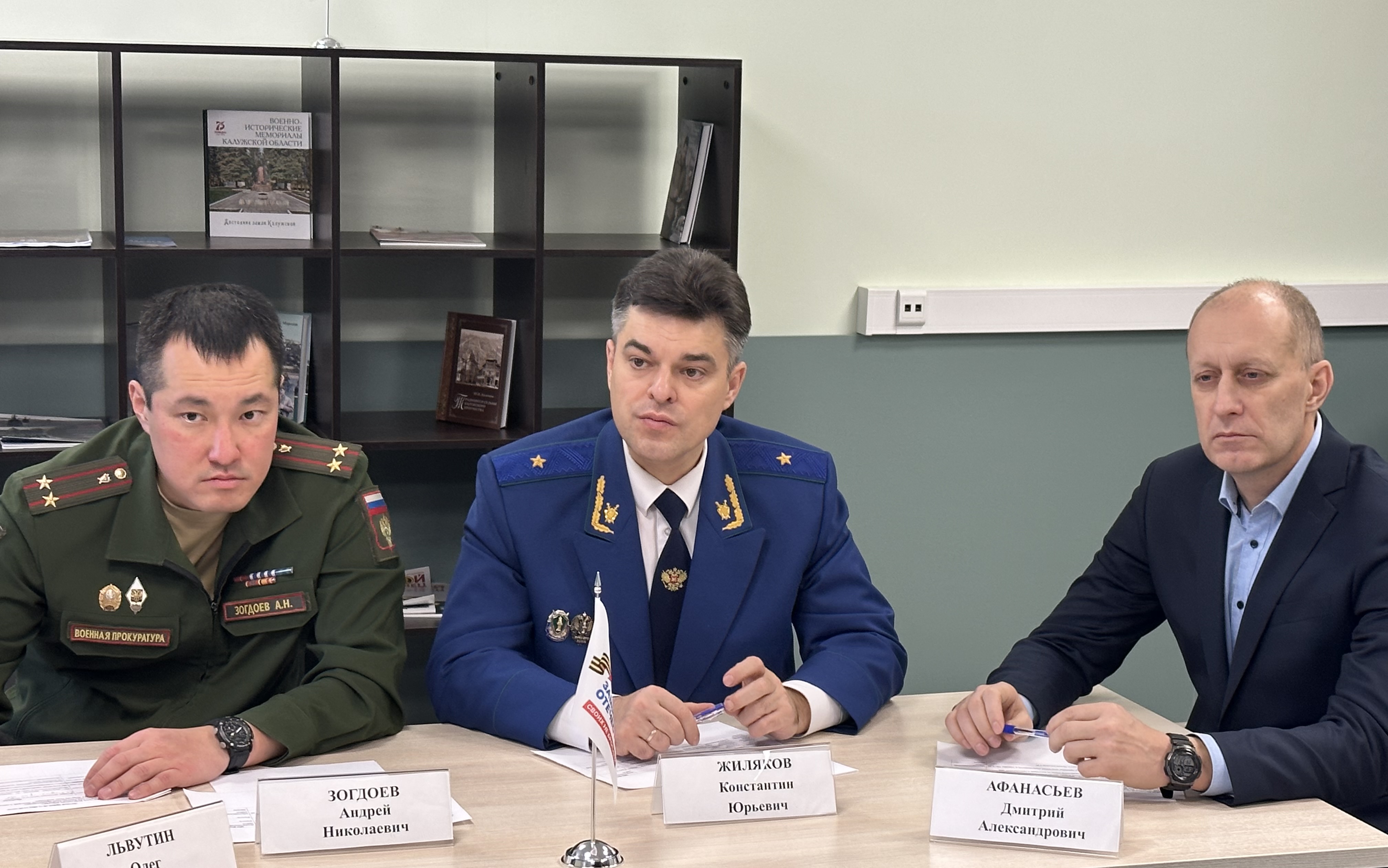 Прокурор области Константин Жиляков совместно руководителем Калужского отделения филиала Государственного фонда поддержки участников специальной военной операции «Защитники отечества» Дмитрием Афанасьевым, военным прокурором Калужского гарнизона Андреем Зогдоевым, военным комиссаром области Олегом Львутиным провели очередной прием участников специальной военной операции и членов их семей