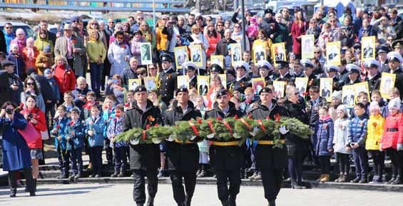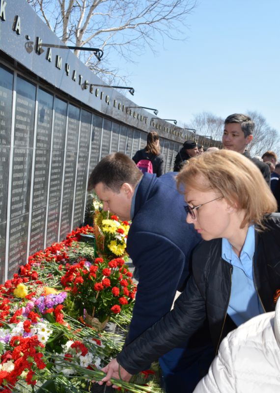 Вместе с участниками торжественной церемонии и ветеранами сотрудники прокуратуры минутой молчания почтили память воинов, отдавших жизнь за Победу над фашизмом, и возложили цветы у стен мемориального комплекса, на котором значатся имена 1068 жителей Камчатки, павших в годы Великой Отечественной войны и в боях за освобождение Курильских островов.