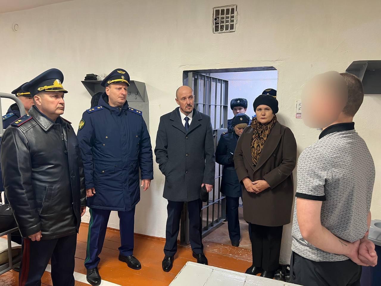 Сегодня, 16 октября 2025 года, прокурор Кемеровской области - Кузбасса Александр Блошкин с рабочим визитом посетил г. Анжеро-Судженск, где совместно с начальником ГУ ФСИН России по Кемеровской области - Кузбассу Константином Березневым, Уполномоченным по правам человека в Кузбассе Василием Борисовым и представителем региональной общественной наблюдательной комиссии Людмилой Сурковой проверил состояние законности и условия содержания подозреваемых, обвиняемых и осужденных в Федеральном казенном учреждении «Следственный изолятор № 4».