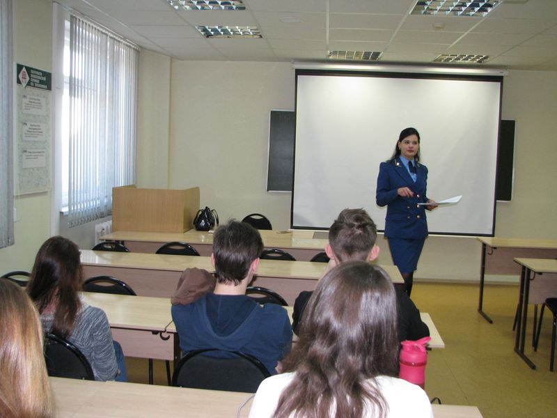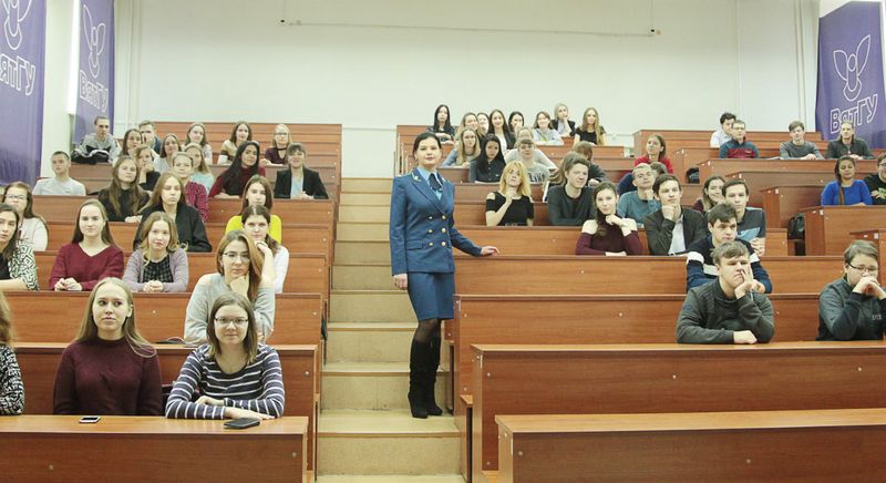 Сегодня, помощник прокурора Кировской области по правовому обеспечению рассмотрению обращений и приему граждан Евгения Бутко провела лекции для студентов институтов биологии и биотехнологии, политехнического, юридического, математики и информационных систем колледжа и лицея Вятского государственного университета, а также факультетов Кировского филиала Московского гуманитарно-экономического института.