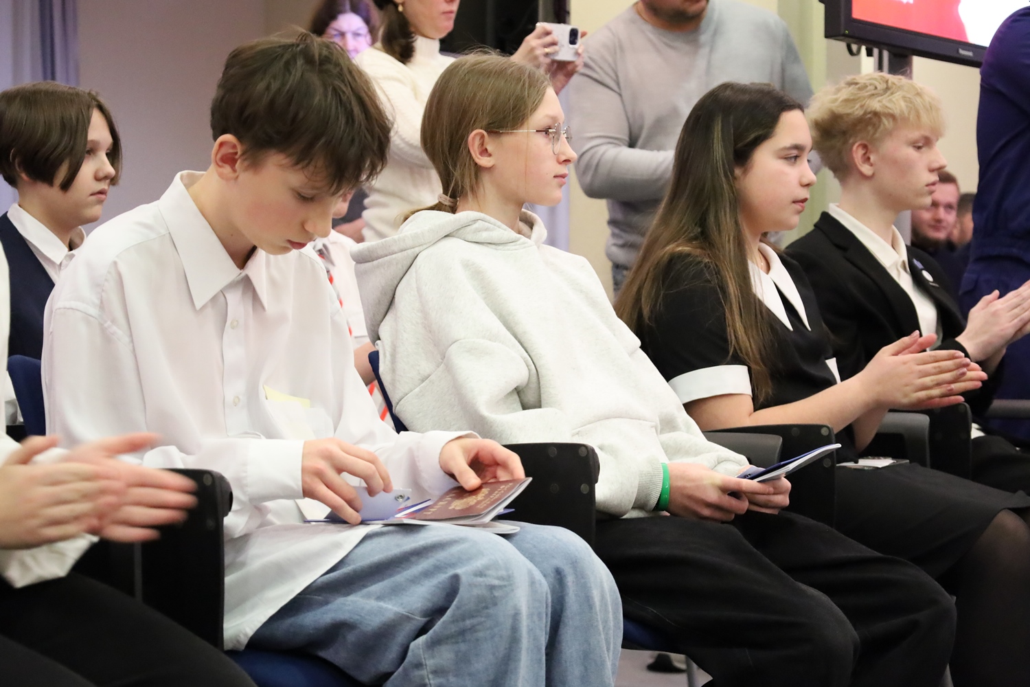 Руководитель регионального надзорного ведомства поздравил присутствующих с получением основного документа, удостоверяющего личность, призвал ребят гордо носить звание гражданина России.