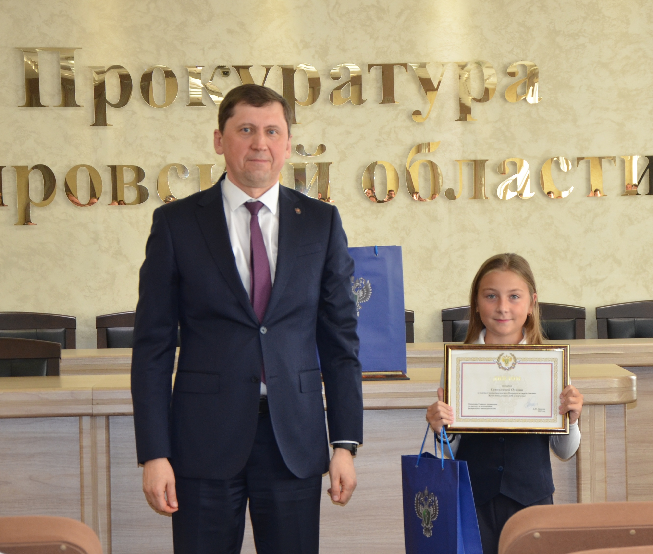 Сегодня, 8 сентября 2025 года, во исполнение поручения Генеральной прокуратуры России, и.о. прокурора Кировской области Дмитрий Шерстнёв встретился с конкурсантами, чьи работы были отмечены конкурсной комиссией высокими оценками, вручил дипломы участников и подарки.