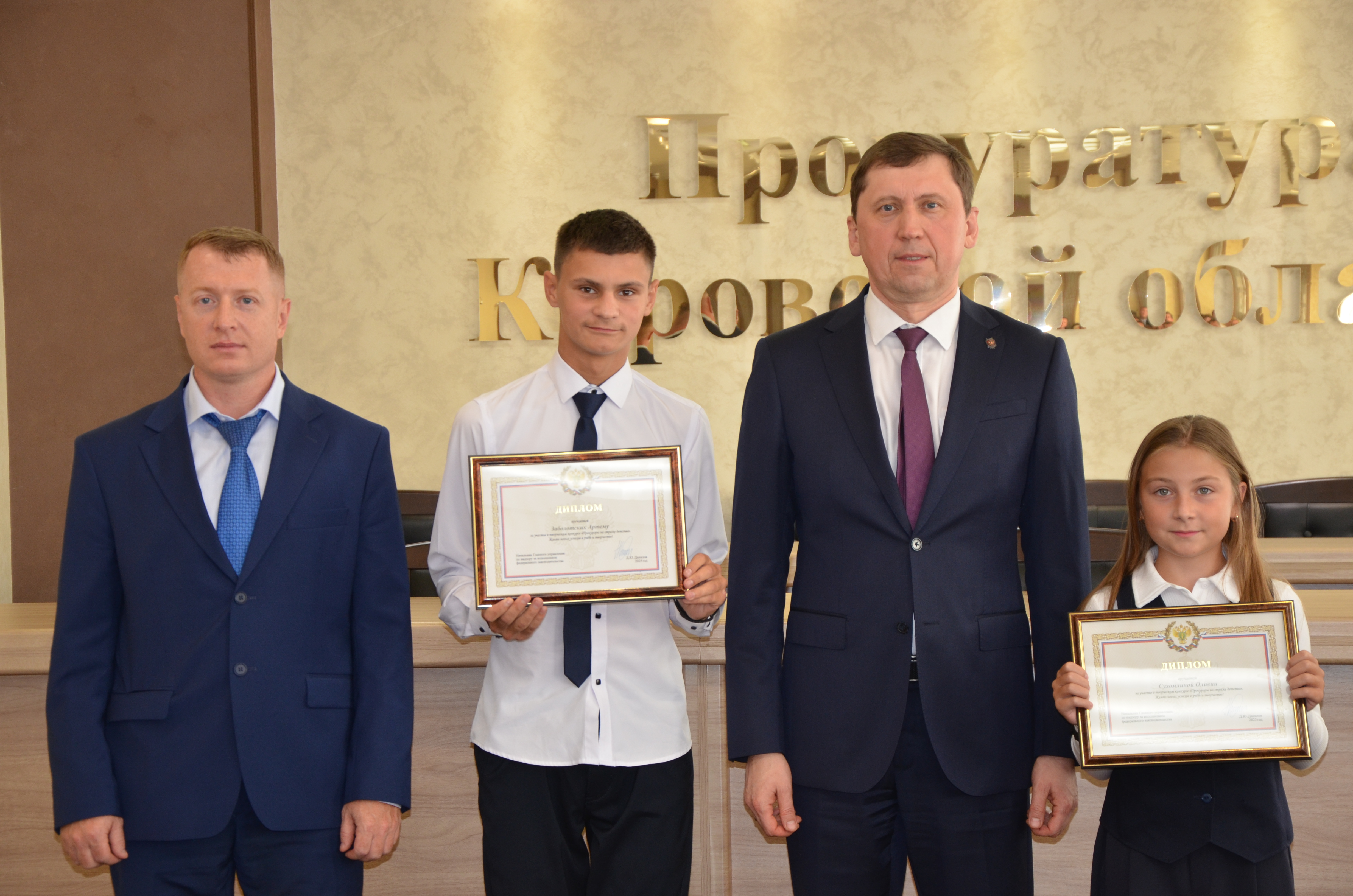 В прокуратуре Кировской области наградили юных участников конкурса «Прокуроры на страже детства», организованного Генеральной прокуратурой России