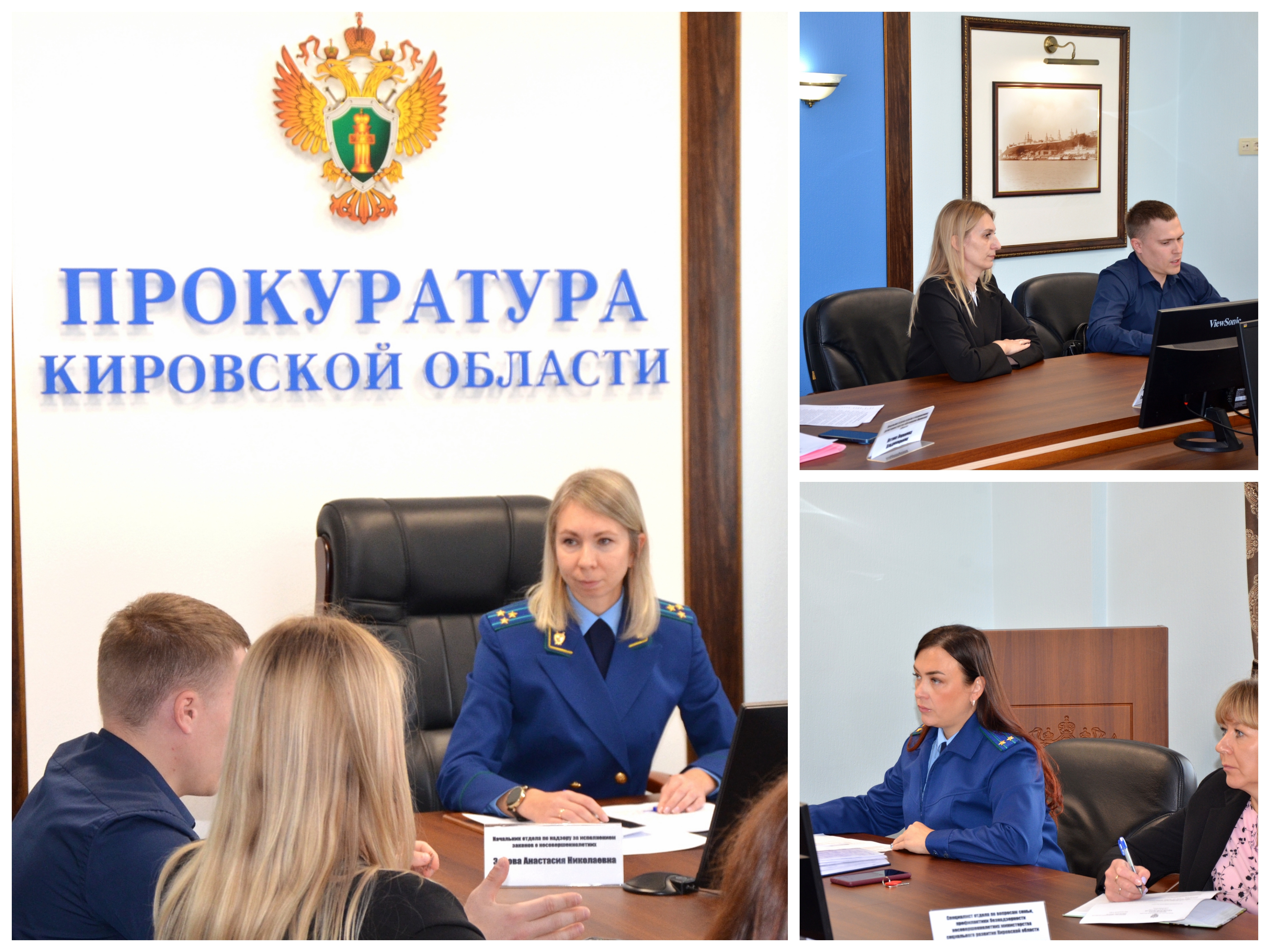 В совещании приняли участие начальник отдела по надзору за исполнением законов о несовершеннолетних прокуратуры Кировской области Анастасия Зонова, представители региональных министерств образования и социального развития, работники прокуратуры Кировской области.