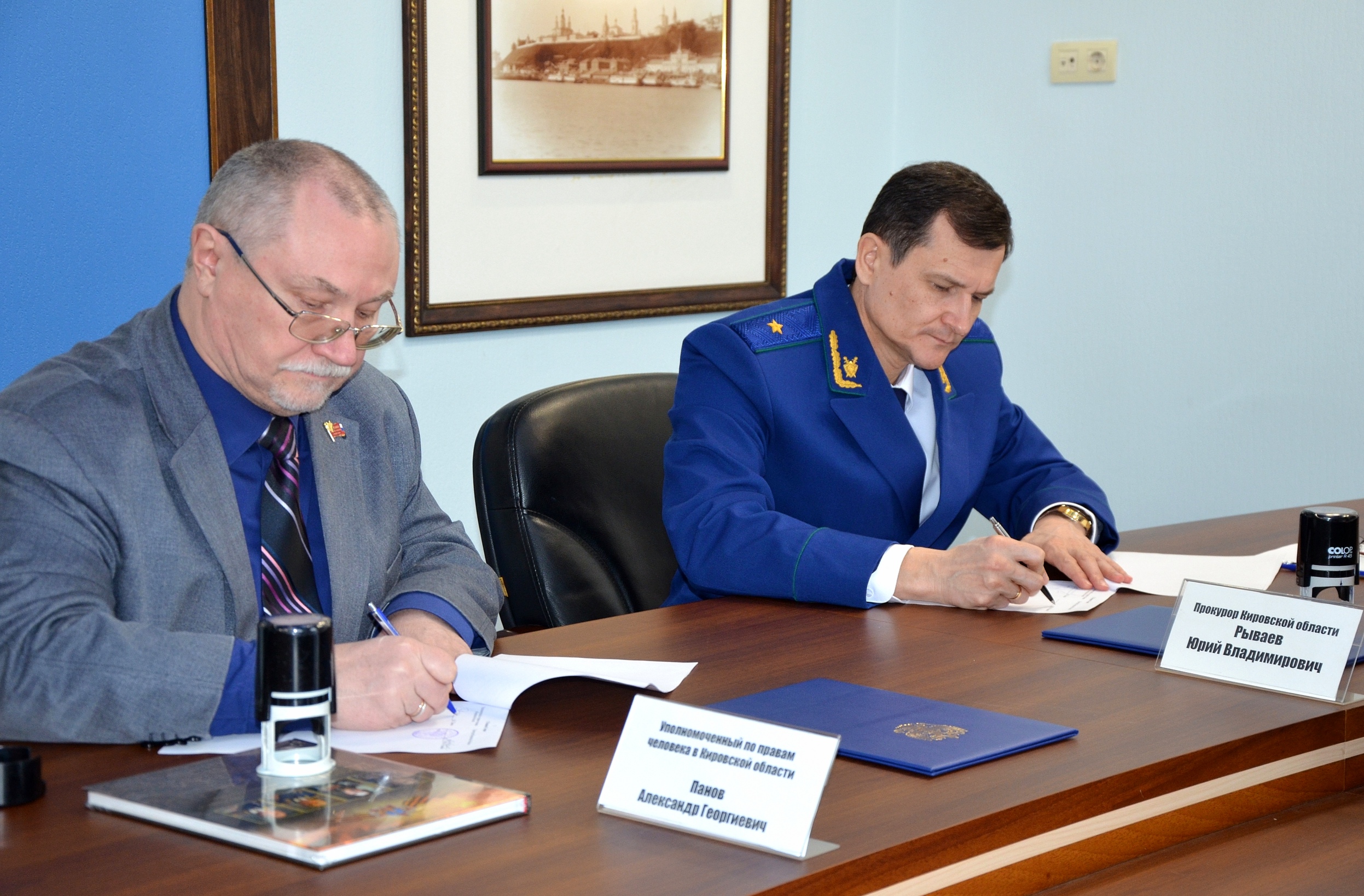Прокурор Кировской области Юрий Рываев и Уполномоченный по правам человека Александр Панов подписали соглашение о сотрудничестве