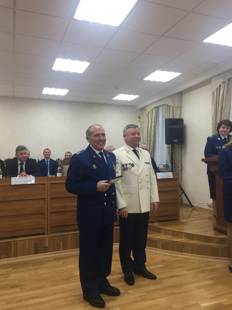 Честь,совесть,справедливость, закон,достоинство,ответственность,человек,гражданин,государство,общество,защита,-такие слова прозвучали от первых лиц области в поздравительных выступлениях! Прокурор области Владимир Геннадьевич Тюльков особо поблагодарил ветеранов и пенсионеров ведомства за сохранение лучших традиций прокуратуры, вклад в укрепление законности, неразрывную связь с трудовыми коллективами,пожелал крепкого здоровья,бодрости и крепости духа,благополучия!