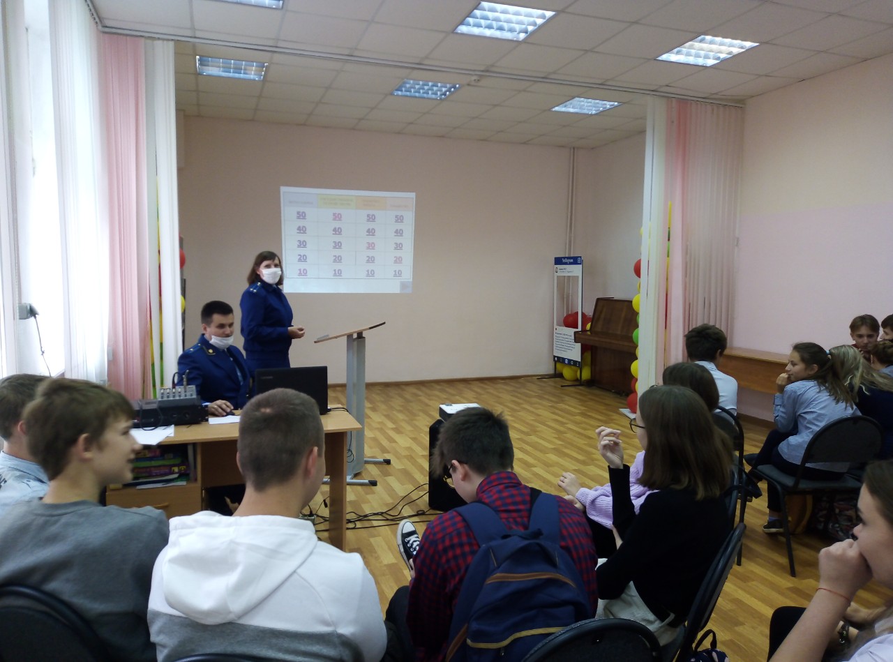 Старший помощник прокурора области по взаимодействию со СМИ Наталья Шумская-Сколдинова и старший помощник прокурора области по взаимодействию с законодательными (представительными) и исполнительными органами, органами местного самоуправления Дмитрий Смирнов для учащихся 9Б МБОУ г. Костромы «Средняя общеобразовательная школа № 27» проведена правовая интеллектуальная игра «Своя игра».