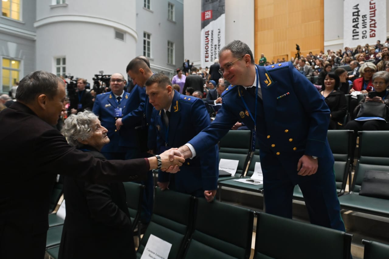 Генеральный прокурор Российской Федерации Игорь Краснов направил участникам мероприятия приветственное обращение, в котором отметил, что органами прокуратуры совместно с другими ведомствами принимаются меры по установлению обстоятельств совершенных нацистами преступлений против мирных жителей.