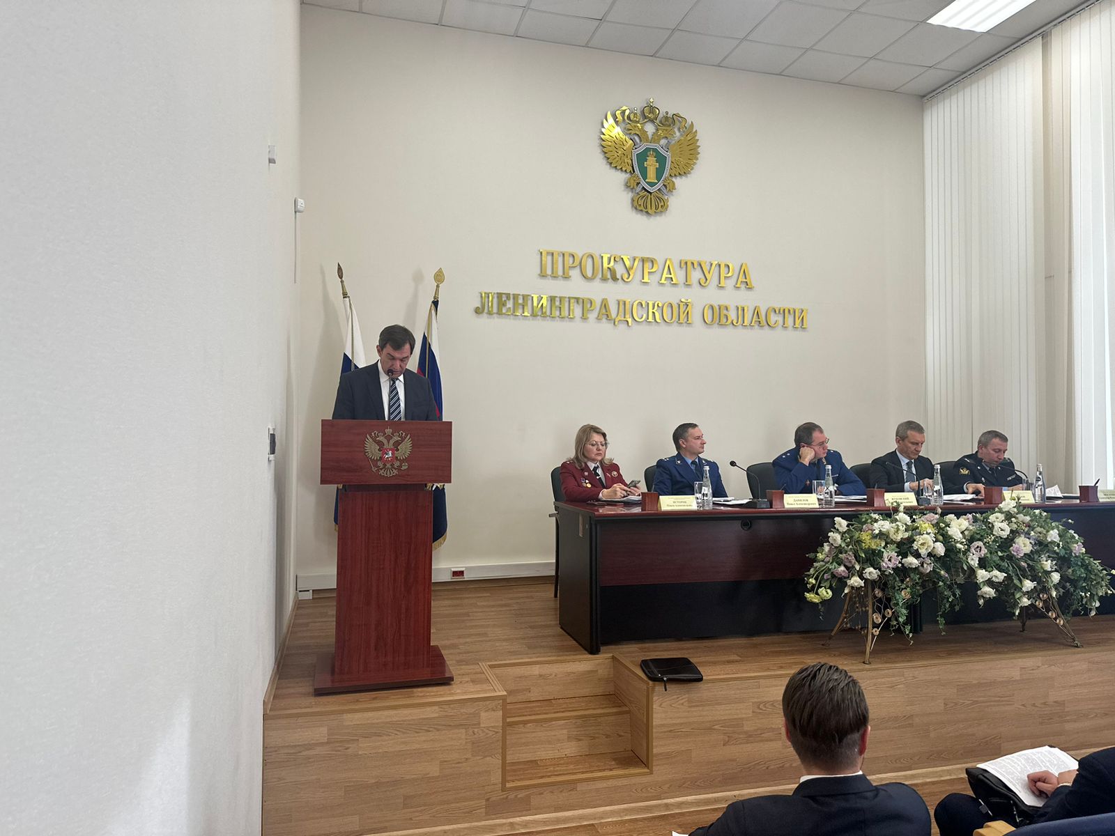 В работе коллегии приняли участие врио руководителя Северо-Западного межрегионального управления Росприроднадзора Алексей Иванкин, руководитель УФССП России по Ленинградской области Александр Мосеенков, первый заместитель председателя Правительства Ленинградской области Роман Марков, руководитель Управления Роспотребнадзора по Ленинградской области Ольга Историк, председатели профильных комитетов Правительства региона, члены коллегии прокуратуры Ленинградской области, руководители структурных подразделений аппарата, городские, районные, специализированные прокуроры и их заместители.