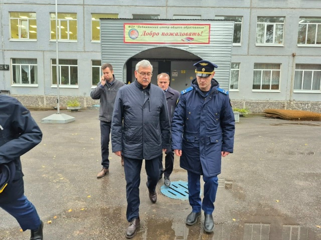 Прокурор Ломоносовского района Сергей Филичев осуществил выезд в МОУ «Лебяженский образовательный центр» с целью контроля фактического устранения нарушений, допущенных при проведении капитального ремонта кровли