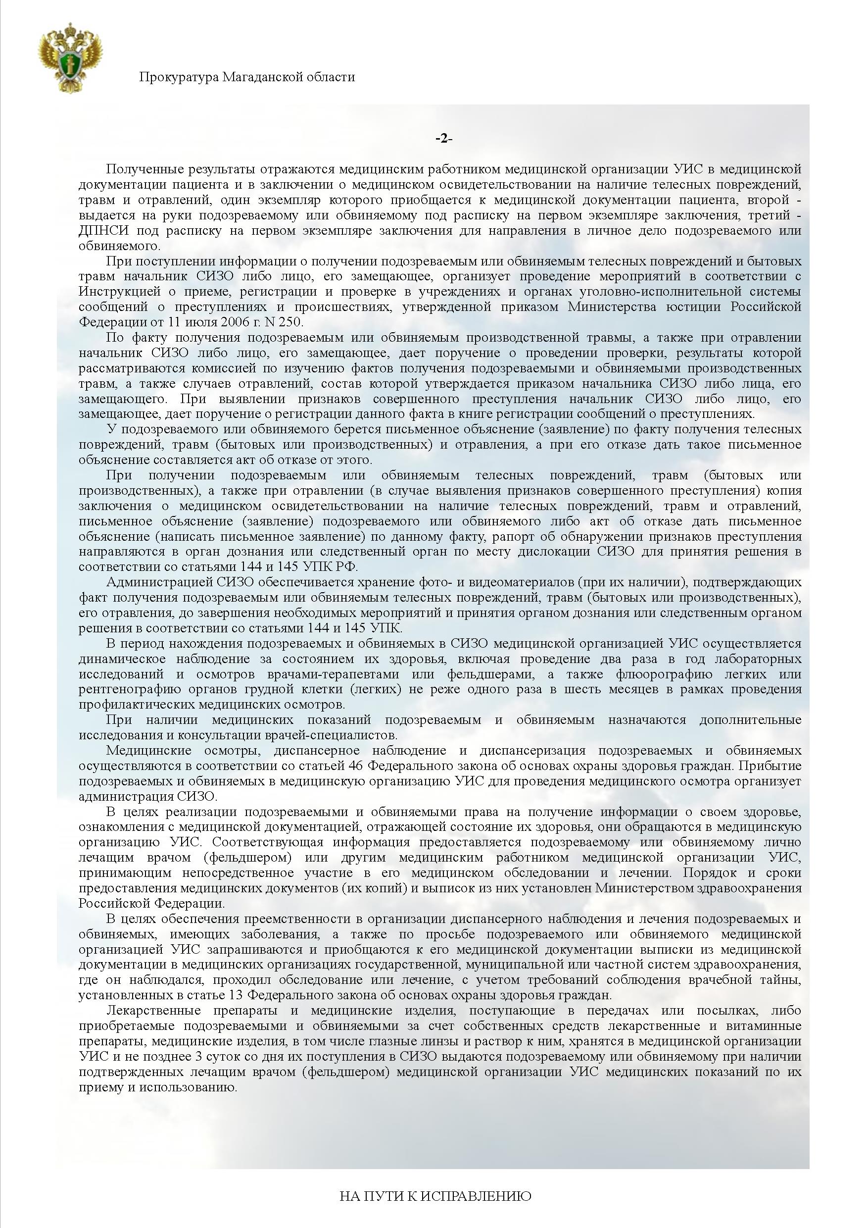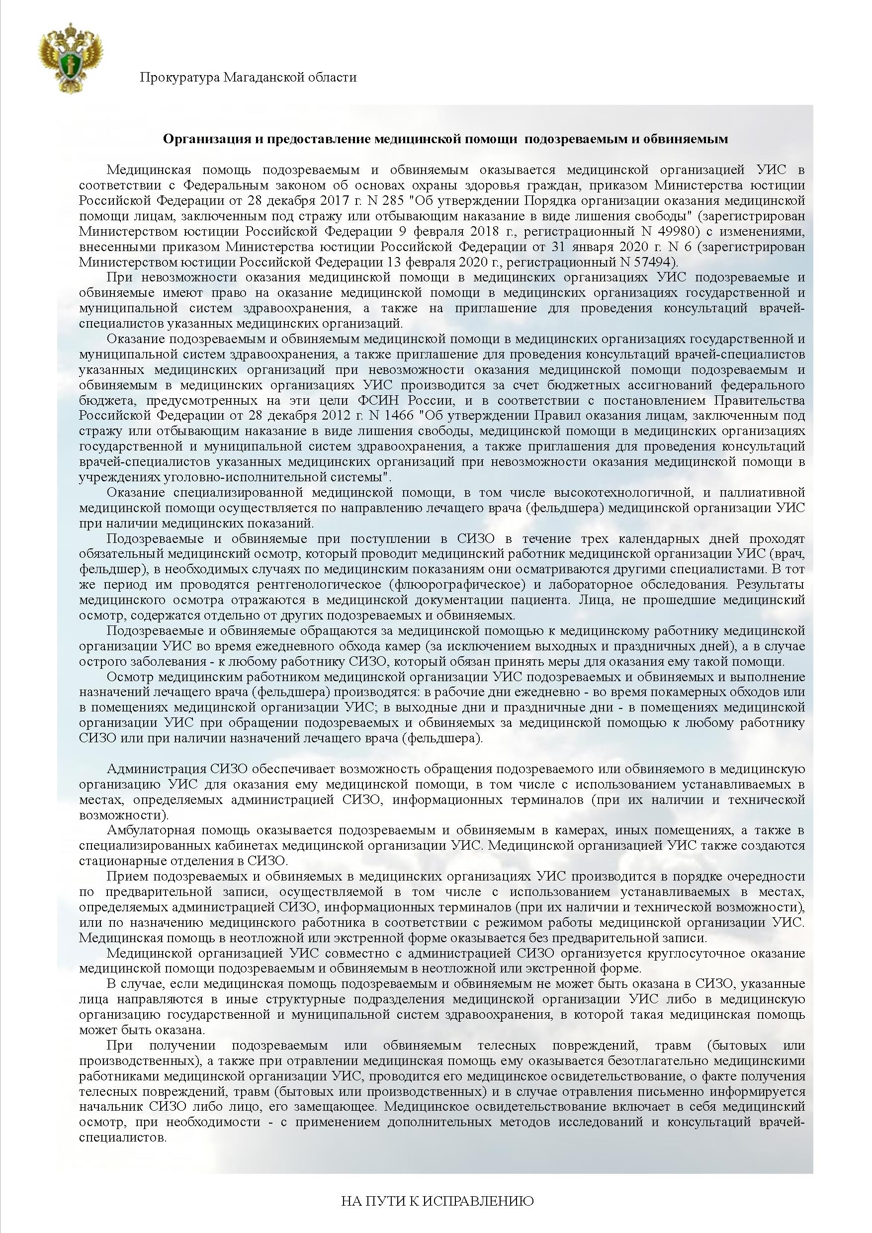 Организация и предоставление медицинской помощи подозреваемым и обвиняемым, содержащимся в СИЗО