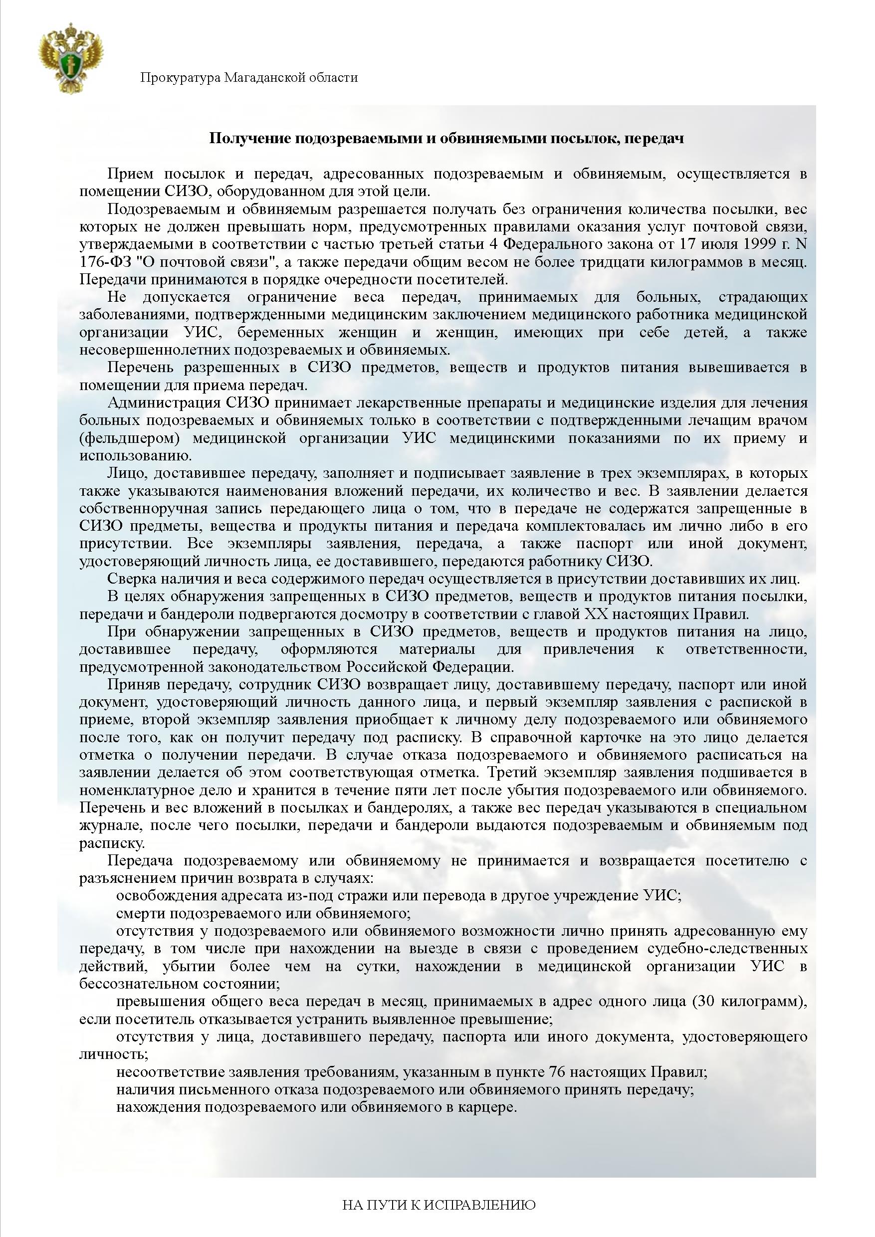 Получение подозреваемыми и обвиняемыми посылок, передач в СИЗО