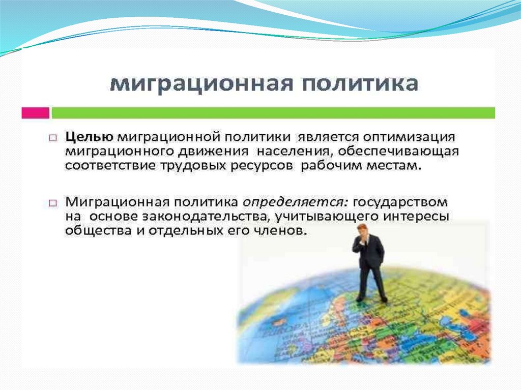 В соответствии с данной концепцией задачами миграционной политики являются, в частности, совершенствование правовых, организационных и иных механизмов, регулирующих и обеспечивающих добровольное переселение в РФ соотечественников, проживающих за рубежом; прием в гражданство иностранных граждан, которые благодаря своим инвестициям, знаниям, умениям и навыкам вносят вклад в развитие российской экономики, науки, профессионального образования, искусства, а также разделяют традиционные российские духовно-нравственные ценности; осуществление трудовой деятельности иностранными гражданами, исходя из потребности российской экономики в иностранной рабочей силе; прохождение иностранными гражданами процедур сбора биометрических персональных данных, медицинского освидетельствования, подтверждения имеющегося образования и квалификации, стажа профессиональной деятельности, а также иных процедур, необходимых для верификации их личных качеств.