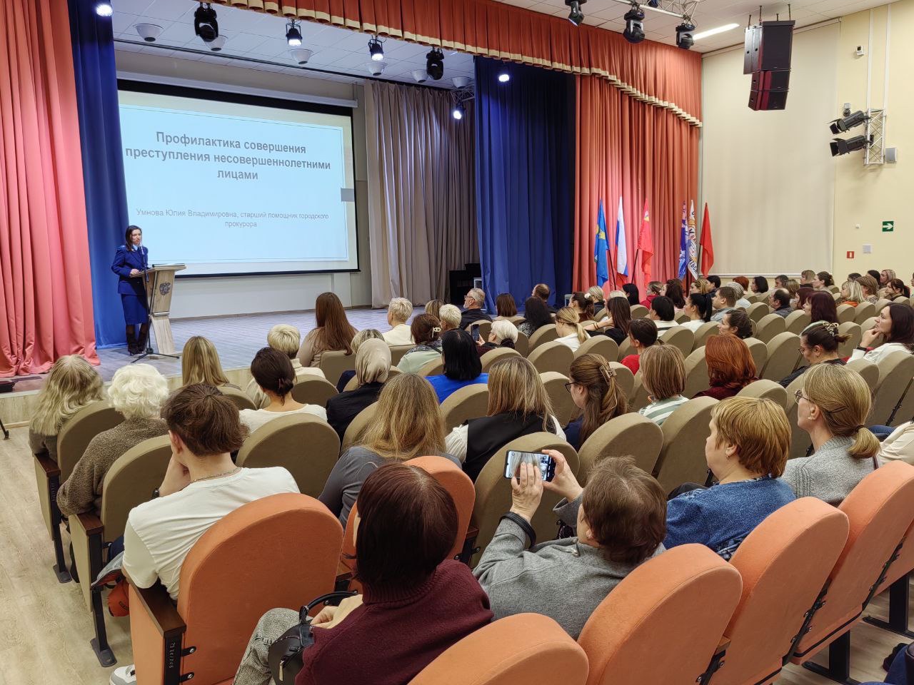 Старший помощник Коломенского городского прокурора Юлия Умнова приняла участие в общегородском родительском собрании с лекцией о профилактике совершения преступлений несовершеннолетними лицами.