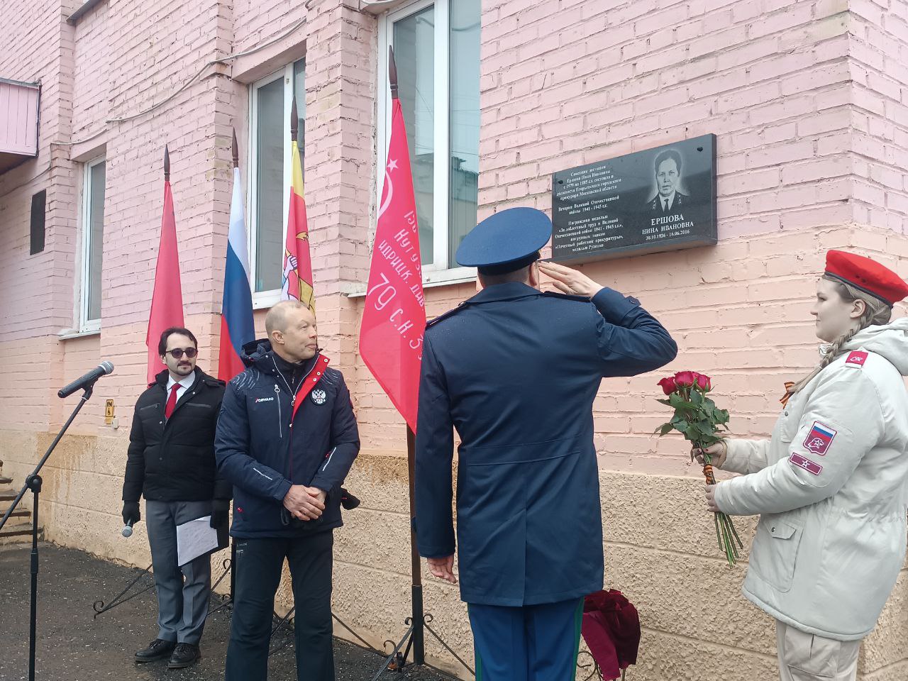 В церемонии открытия памятной доски приняли участие заместитель прокурора Московской области Олег Черсков, Егорьевский городской прокурор Алексей Савельев, глава городского округа Егорьевск Дмитрий Викулов, председатель Совета депутатов городского округа Егорьевск Михаил Лавров, сын Нины Ивановны Игорь Ершов, отряд Всероссийского детско-юношеского военно-патриотического движения «Юнармия» и представители общественных организаций.