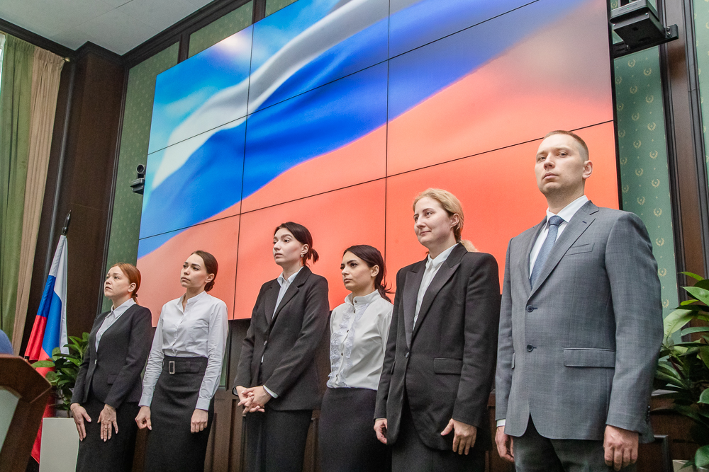 После состоялось торжественное принятие Присяги прокурора молодыми специалистами в стенах музейного комплекса Вооруженных сил России.