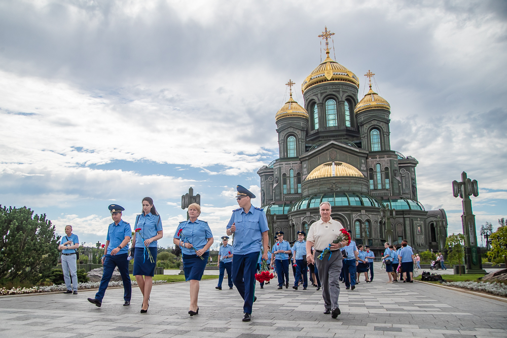 Мероприятие продолжилось посещением работниками прокуратуры и приглашенными гостями экскурсии по Главному храму Вооруженных сил Российской Федерации и участием в церемонии возложения цветов к скульптурной композиции «Матери победителей».