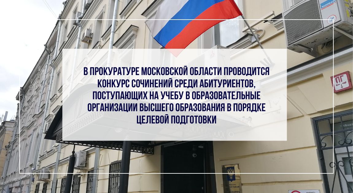 В прокуратуре Московской области проводится конкурс сочинений среди абитуриентов, поступающих на учебу в образовательные организации высшего образования в порядке целевой подготовки