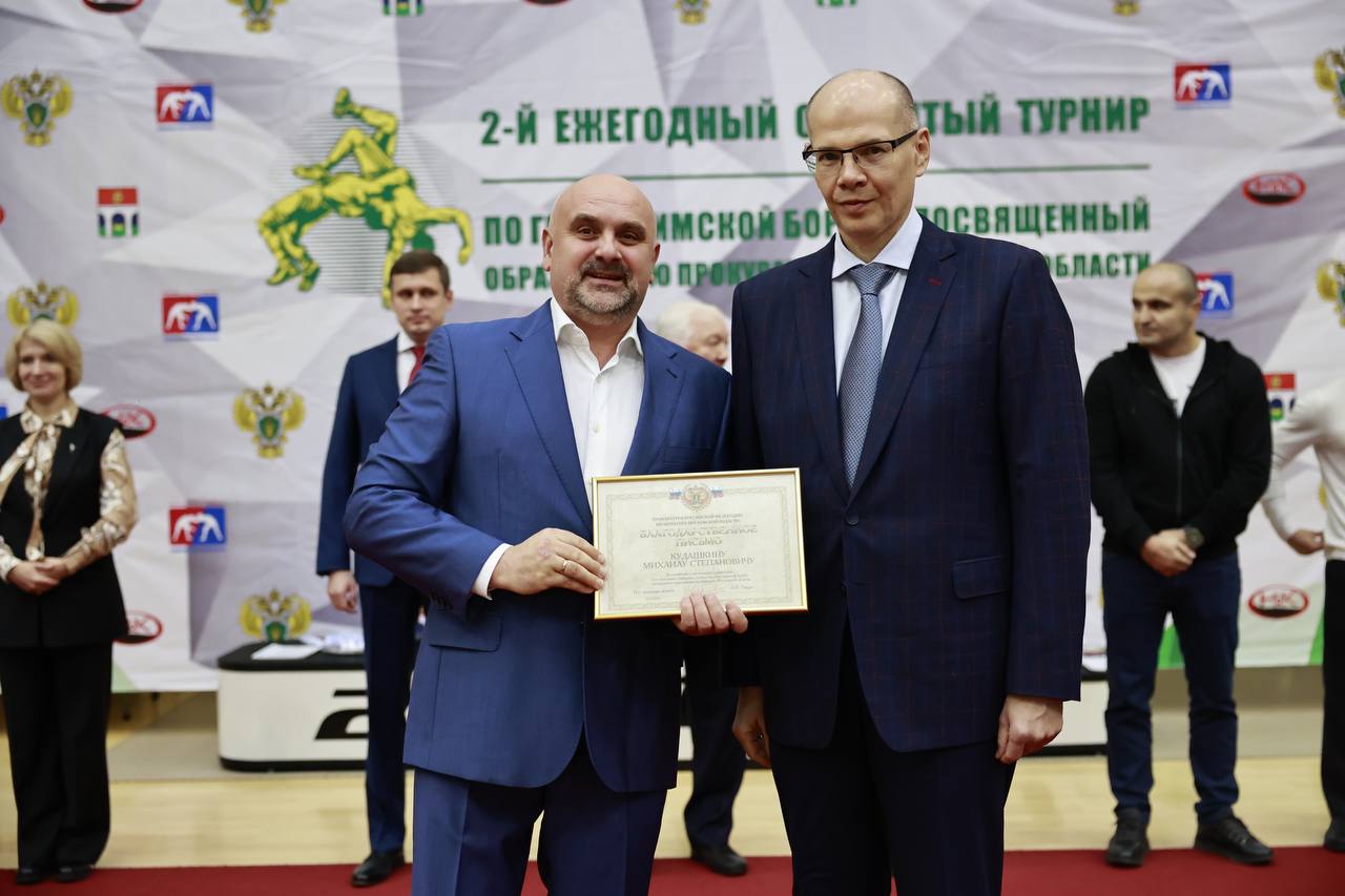 На спортивном мероприятии присутствовали исполняющий обязанности прокурора Московской области Андрей Ганцев, Мытищинский городской прокурор Московской области Андрей Гвоздев, глава городского округа Мытищи Московской области Юлия Купецкая, начальник отдела греко-римской борьбы Федерации спортивной борьбы России Николай Проказов, президент Федерации спортивной борьбы Московской области Армен Григорян и другие почетные гости.