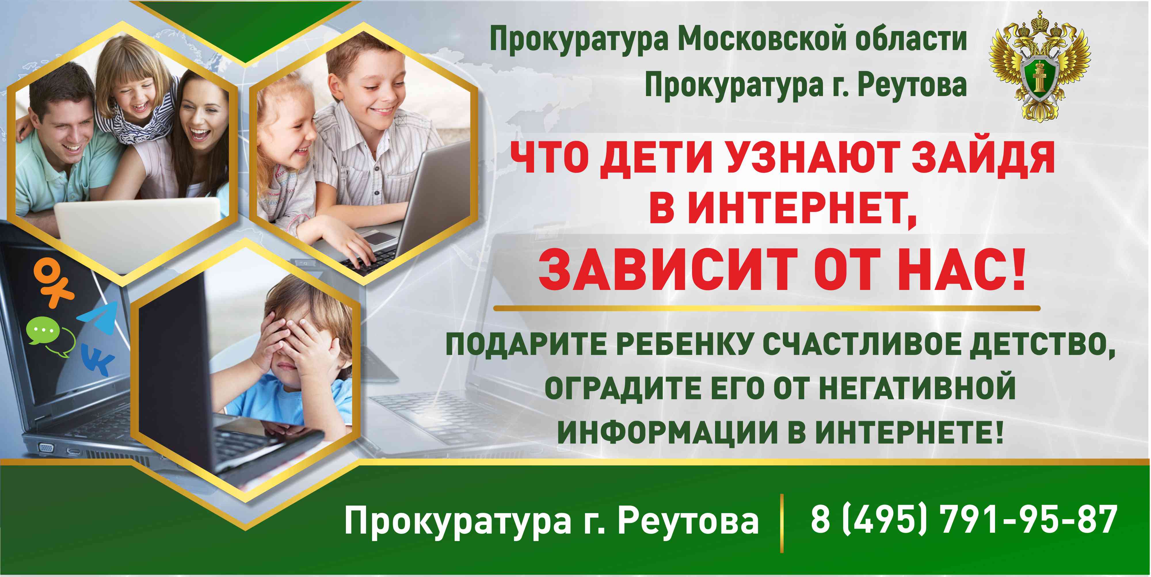- баннер «Подарите ребенку счастливое детство, оградите его от негативной информации в Интернете» прокуратуры города Реутова;