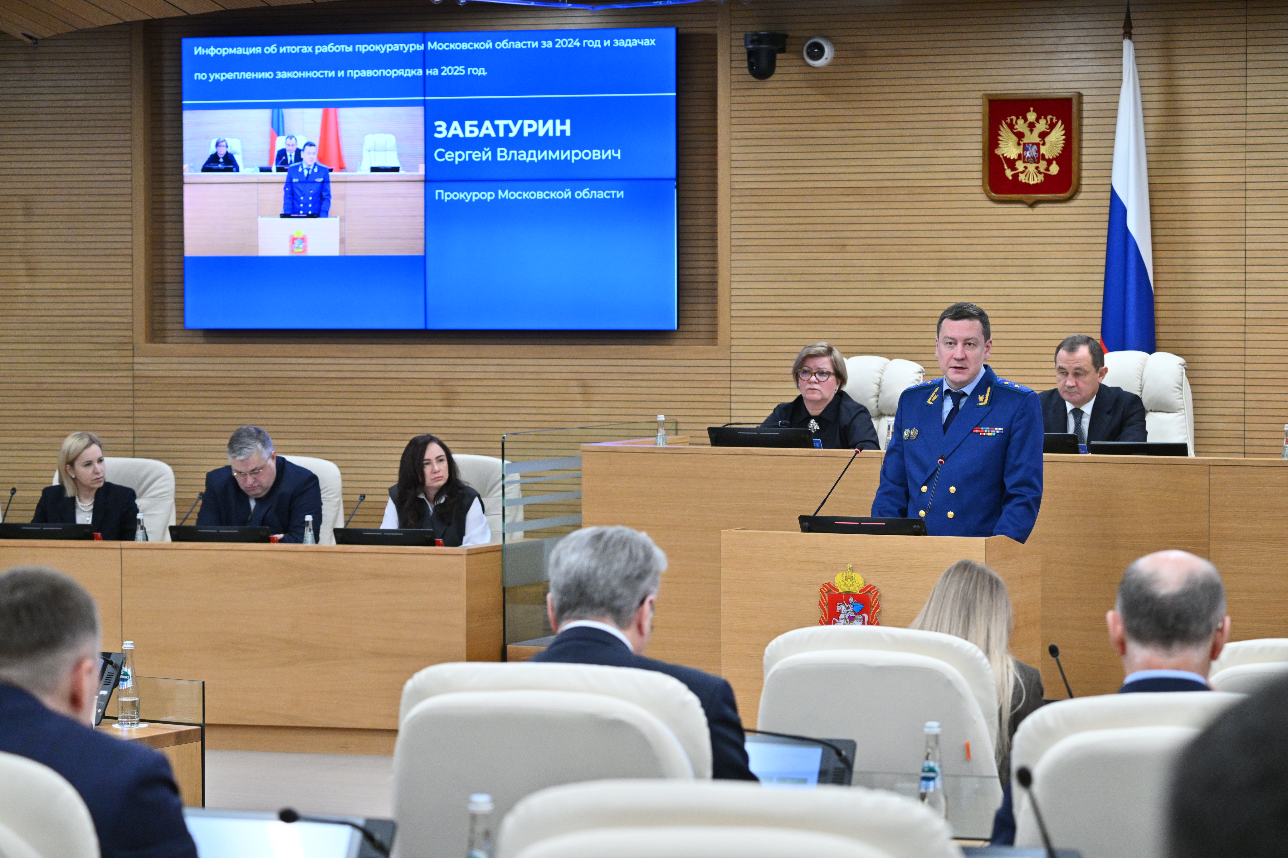 Сегодня, 20 февраля 2025 года, прокурор Московской области Сергей Забатурин выступил на очередном заседании Московской областной Думы с информацией об итогах работы прокуратуры области в прошедшем году, а также представил законопроект «О льготном налогообложении в Московской области».