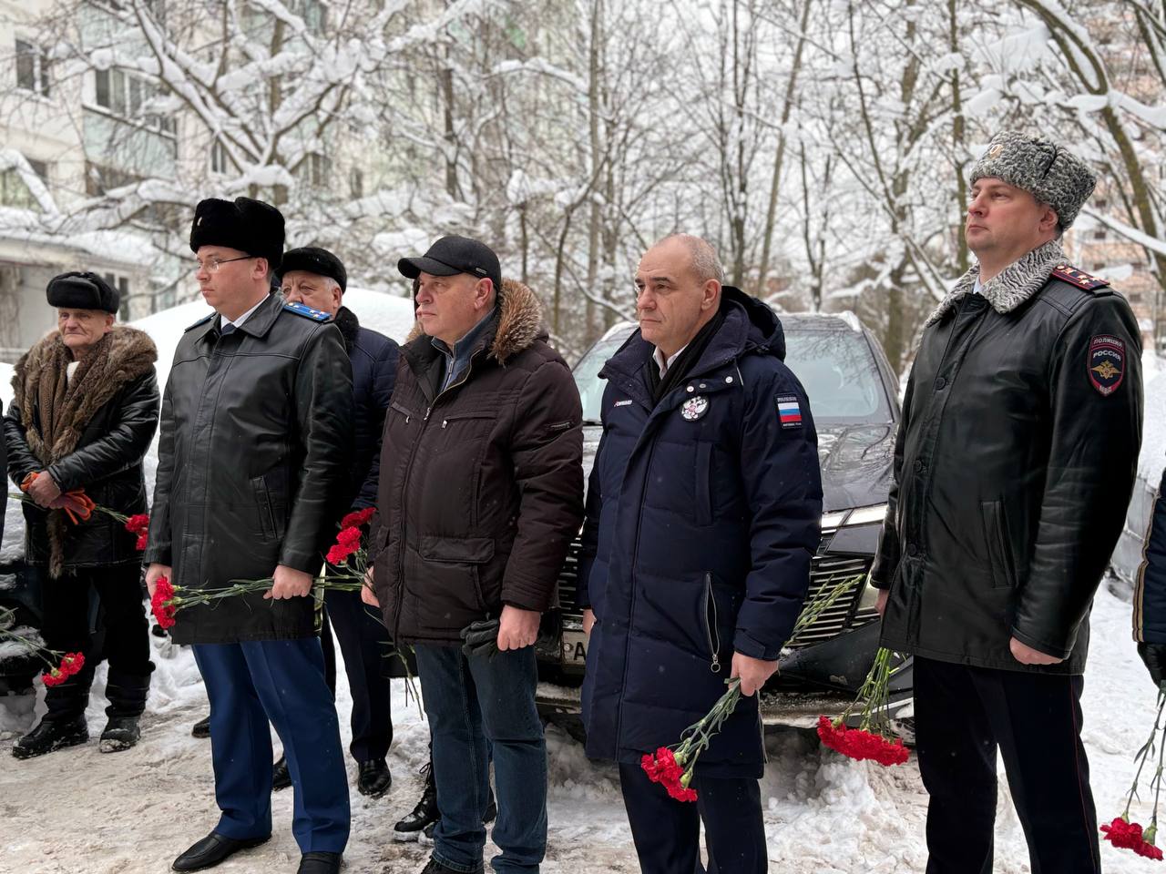 Работники Третьей прокуратуры по надзору за исполнением законов на особо режимных объектах Московской области возложили цветы к мемориальной доске памяти погибшего при исполнении служебных обязанностей старшего следователя прокуратуры Керезя Юрия Григорьевича.