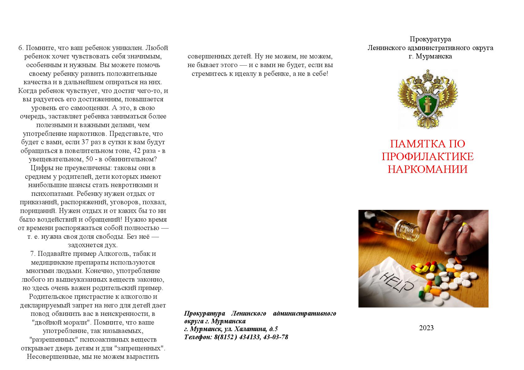 Прокуратура Ленинского административного округа г. Мурманска. Памятка по профилактике наркомании.
