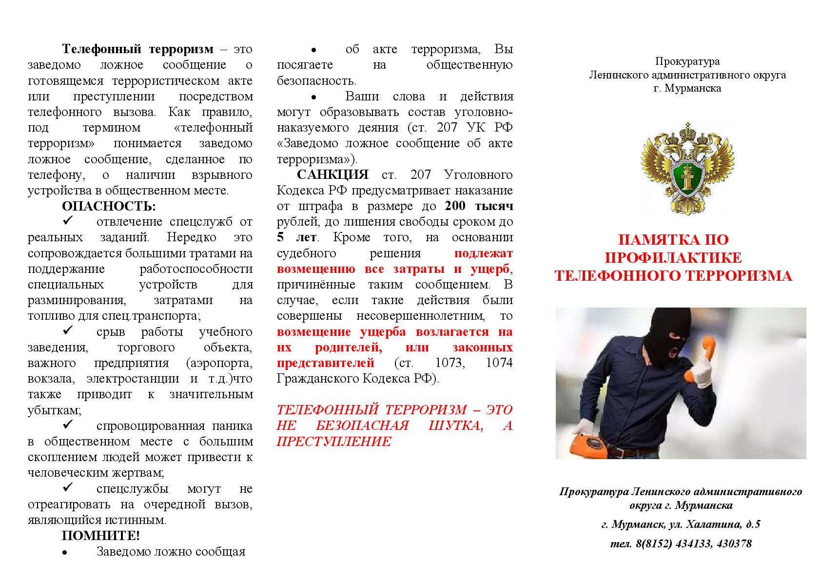 Прокуратура Ленинского административного округа г. Мурманска. Памятка_Профилактика телефонного терроризма
